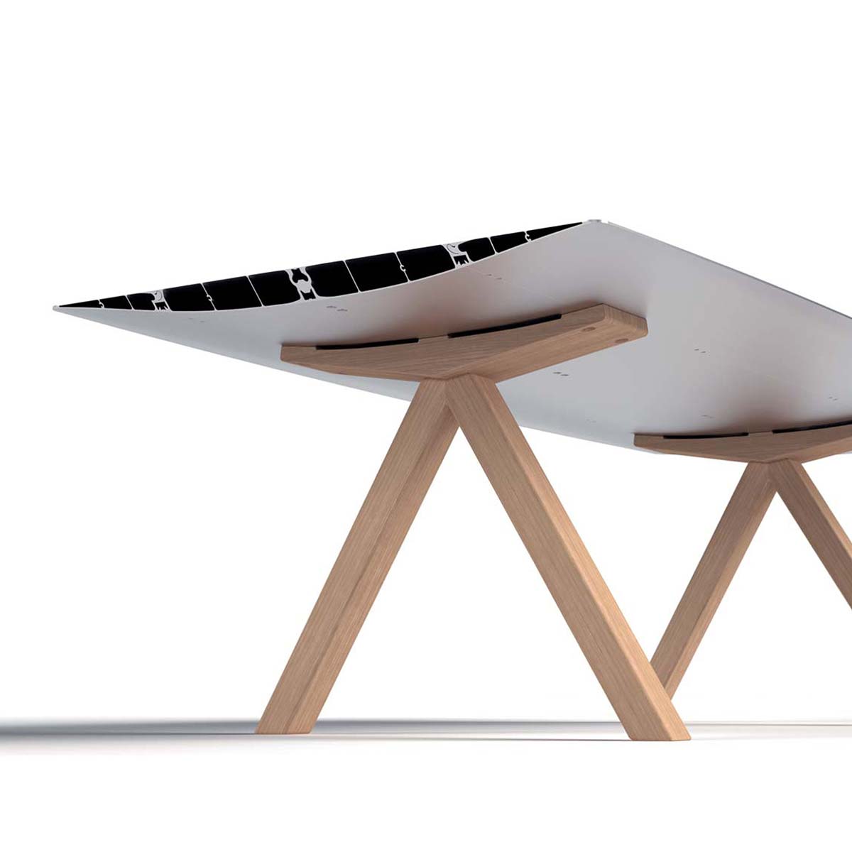 Konstantin Grcic 通过此表 打开了他为 Bd Barcelona设计的Extrusions系列,其洗礼为 Table B。它的名称与设计本身一样简单和技术性。Grcic受到经典Bd件的启发,例如Hypóstila搁板装置(自1979年开始生产),用于开发具有最小轮廓的挤压铝制桌面。最大长度可达500厘米。提供多种表面处理,并提供三种支腿型号。适用于室内和室外区域。其明显的简单性掩盖了高级工程师参与的复杂技术开发。生产过程还包括几个手工过程。结果是一件具有德国设计师所有特色的精巧作品。挤压铝制桌面,银色或亚光黑色透明阳极氧化抛光剂,或根据要求的RAL颜色参考涂漆。上表面可以用天然橡木板和水性清漆完成。支脚共有三种类型:混凝土,不锈钢杆和天然橡木和水性清漆。