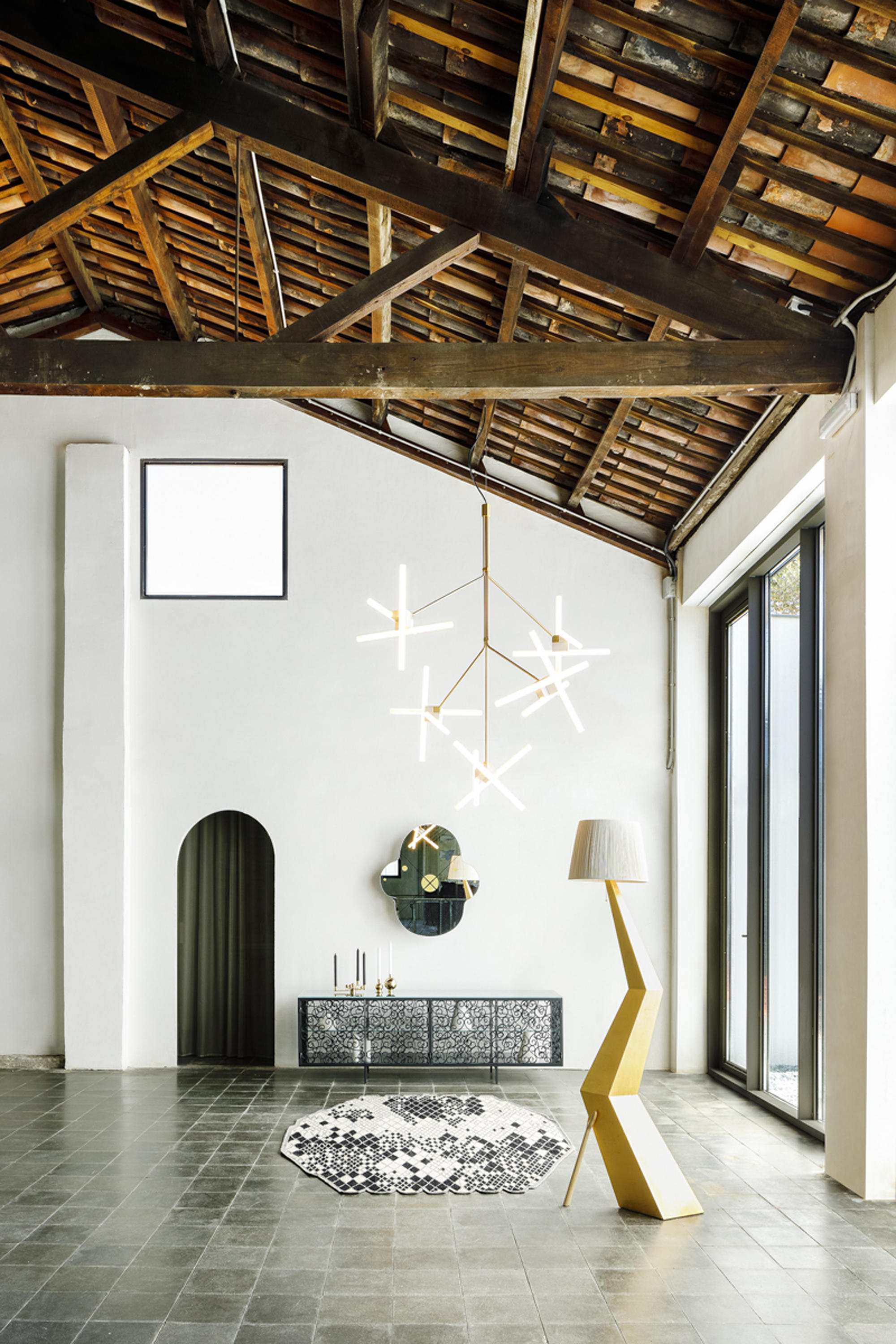 佩佩·科特斯(PepeCortés)于1976年设计了这种白炽灯,但直到Bd重新发现它并于1984年投入生产后,它才被遗忘在抽屉中。与哈维尔马里斯卡尔。花环(附件吸顶灯),支架(站立灯)和管在镀铜铁。设计一起 Bulbholder在黄铜3白炽灯条的最大S- 14D 60W。3x60W 230V / 50Hz的。认证CE UNE -EN 60598-1。