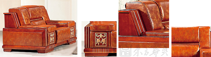 ※  上图为细节图展示,厚实宽敞的扶手,明晰的实木扶手线条,已经碳字纹花技术,让沙发更添高贵气息!