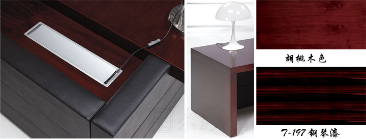 ※ 多功能线盒,可安装电源数据等功能插座,满足多媒体办公自动化需要!一族一族模块系统背后蕴含的简洁裁切理念,有胡桃木和钢琴漆两种选择!