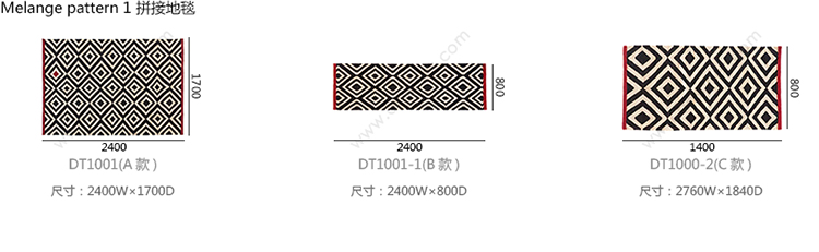Melange pattern 1 拼接地毯 系列尺寸/示意图