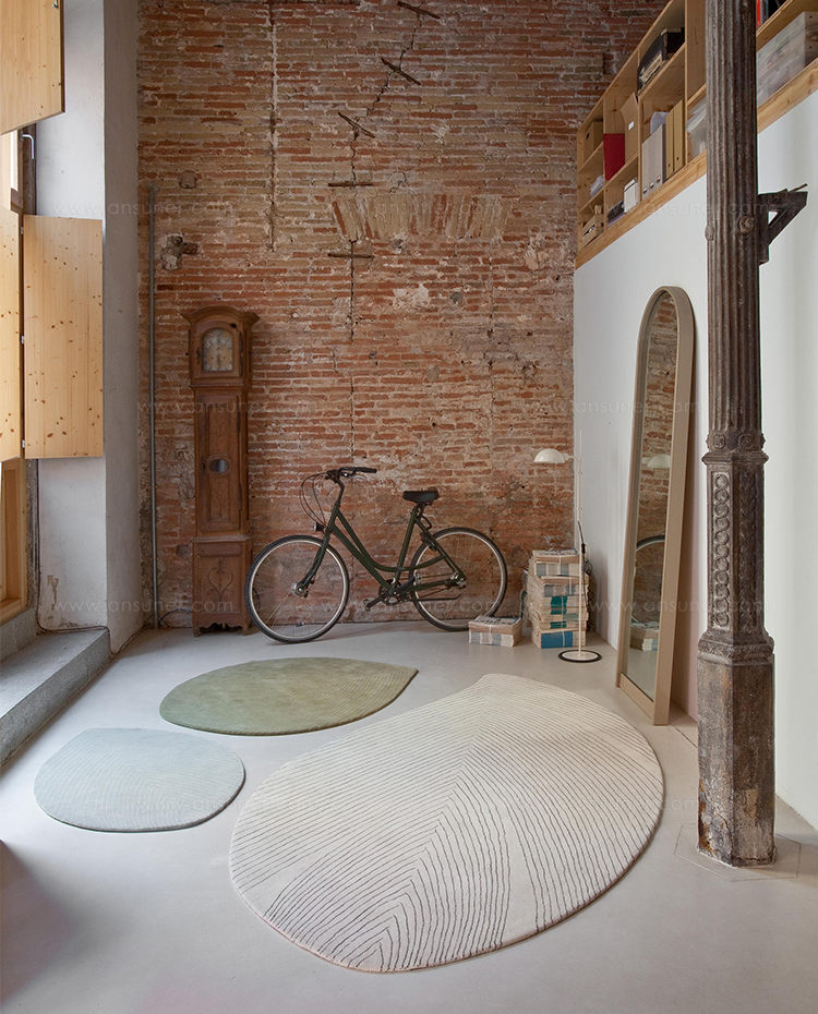 它有三种尺寸和一种柔和的调色板,包括:象牙色、淡橄榄色和石绿色,羽毛状的地毯很漂亮,也可以放在一起形成令人振奋的组合。