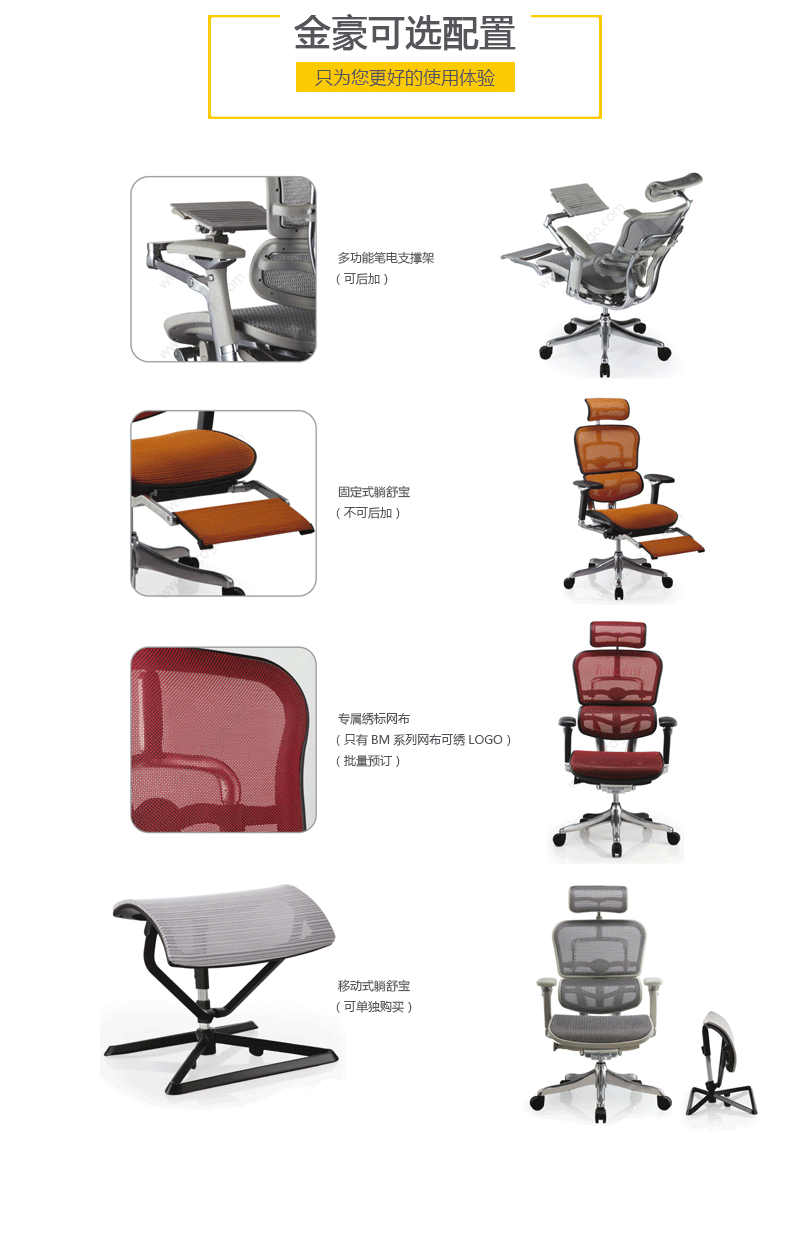金豪办公椅是一款符合人体工学的全功能性办公椅,力求使用者能充分理解其人性化的设计及达到最舒适的调节。