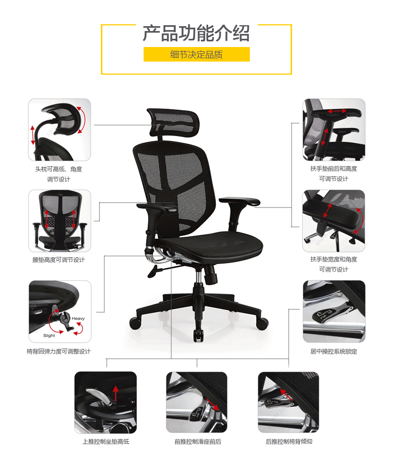 金卓的优美设计有利于持久的舒适和美感。工学椅的结构和功能利用同步倾仰底盘控制功能锁定,滑座和高度调节。高度和角度均可调的扶手和头枕都包含在这张特有的工学椅里。