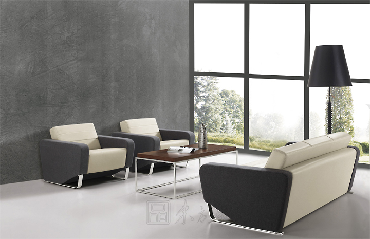 ※  上图为系统配套休闲区场景展示,不锈钢脚架沙发,实木面茶几颜色可与班台同色。