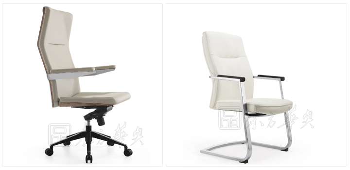 ※ 上图为班台配套大班椅及班前椅,烤漆五星脚架,不锈钢弓形脚架,可以根据客户要求选择真皮颜色。