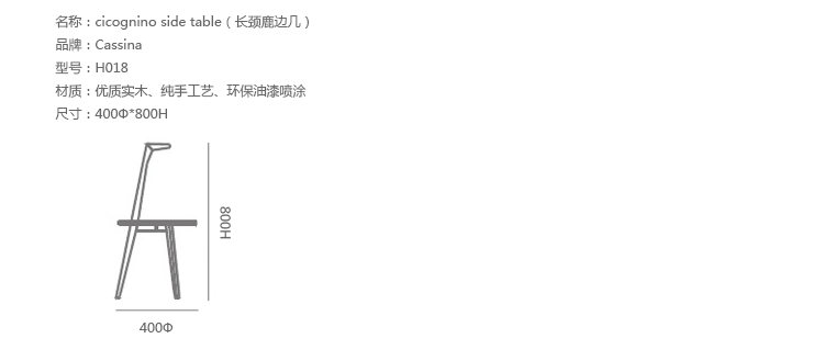 Cicognino Side Table(Cicognino 边几)是著名设计师Franco Albini富有想象力的设计。边几采用实木贴面,非常漂亮精致,非常有设计感和品质感,造型酷似长颈鹿又像一只伸长脖子的天鹅。一张小圆桌,三条实木脚架,做工精湛,其以最小的结构,确保高度的稳定性和完美的平衡,是实用性与艺术玩赏性的完美结合。