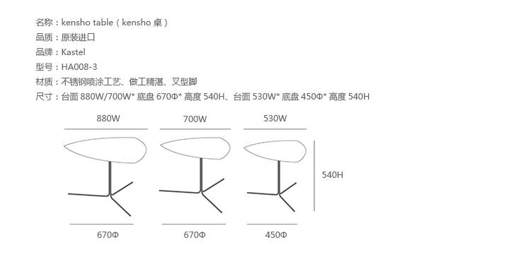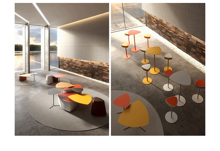 Kastel是一个在室内装饰领域极具影响力的公司,该公司具备高水平的综合生产能力,是一个充满活力的公司。Kastel公司产品多种多样,包括办公座椅,社区座椅和家庭座椅等等。Kastel在对人体工程学进行深刻研究之后,制定了现在的生产线,产品的设计以舒适为主,在生产过程中每一步都严格遵循这一宗旨,为客户提供高性能的产品,满足客户对舒适的基本要求。这也是Kastel公司的经营理念。kensho table(kensho桌)系列桌子采用不锈钢喷涂工艺、做工精湛、三角形脚架,整体造型像盛开的花朵一般,颜色可选黄色,橙色,白色等颜色,多张平凑在一起,宛若一个小小的花园,且与其他家居搭配非常完美和谐,集艺术性与功能性为一体。