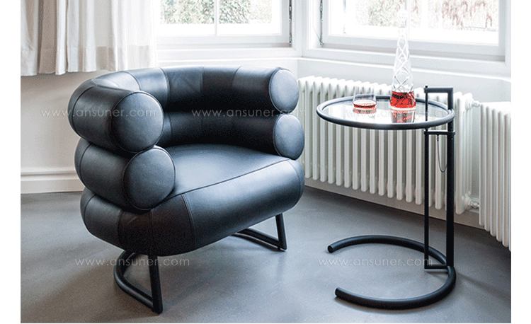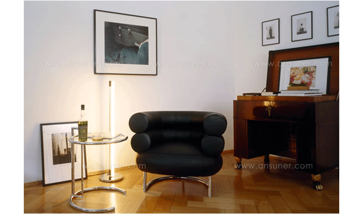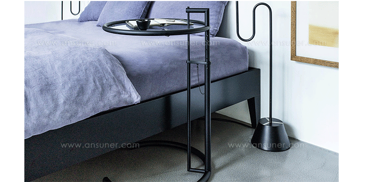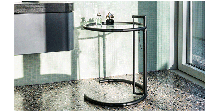 In the 1920s Eileen Gray experimented with various versions of the design of the Adjustable Table E 1027. As she changed the look of the table with a black metal top as an alternative to the crystal glass top, she also selected black as the colour for the frame. The matte black lacquer clearly emphasises the lines of the table and its form – a version she considered especially elegant. Together with Zeev Aram, Eileen Gray developed her Adjustable Table E 1027 for production in the 1970s; they both decided to produce the chrome-plated version first, with the intention to introduce the table frame in black at a later date