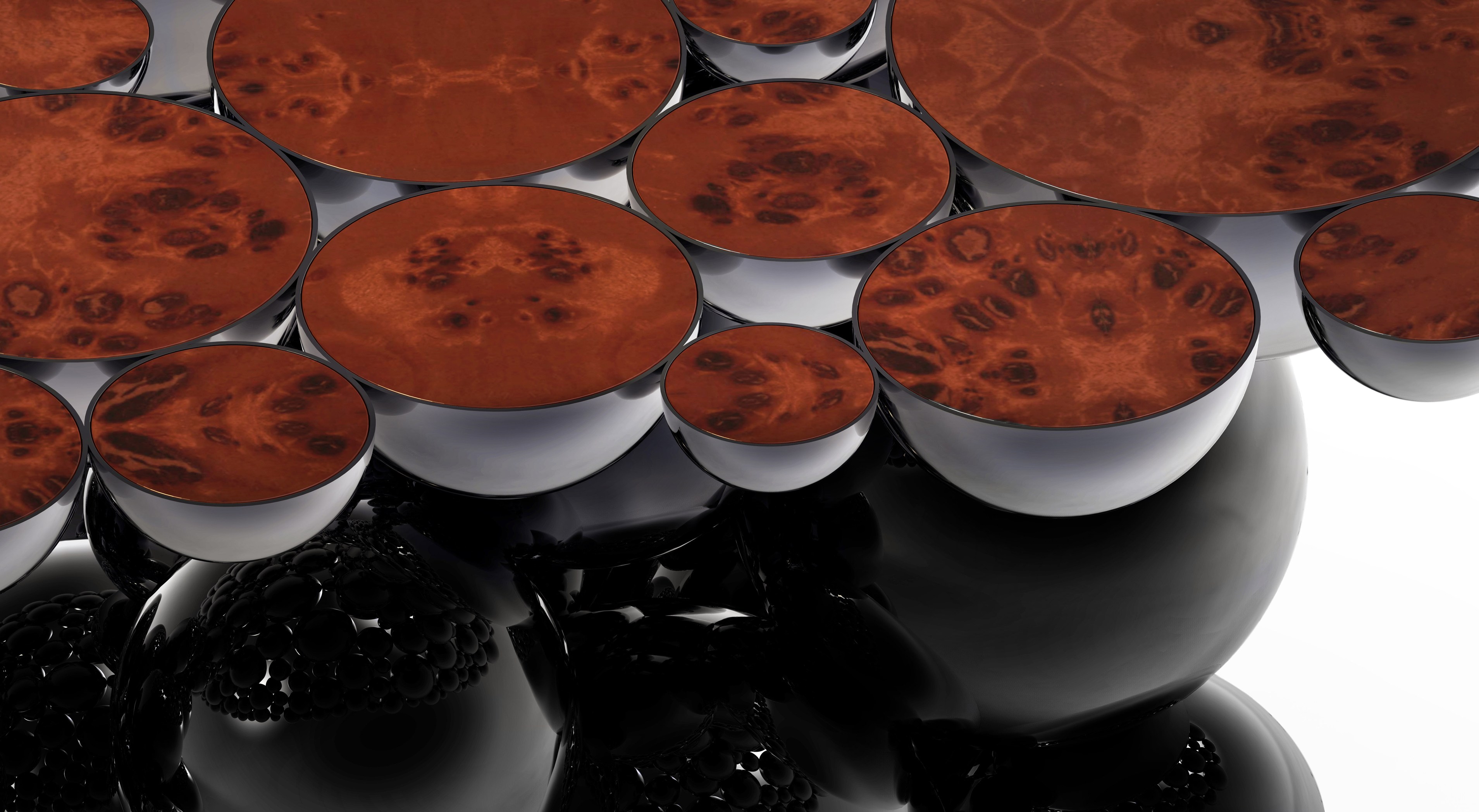After our recent outstanding moment of inspiration - the creation of Newton dining table - we conceived a console inspired by this exclusive piece of furniture. Once again, we defy the laws of physics and redesigned this monumental console made from aluminum and lacquered in black, with a high gloss varnish. The spheres and semi spheres that complete this futuristic console are gold plated. This intriguing console is ideal for any modern living rooms, bedrooms and hotel lobbies characterized by luxury interior design furnishings.
