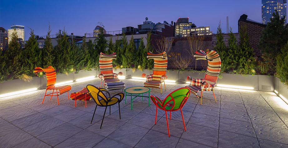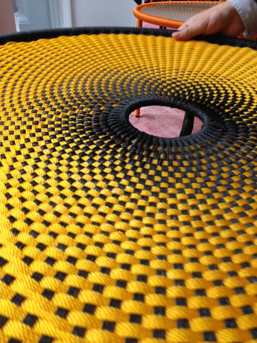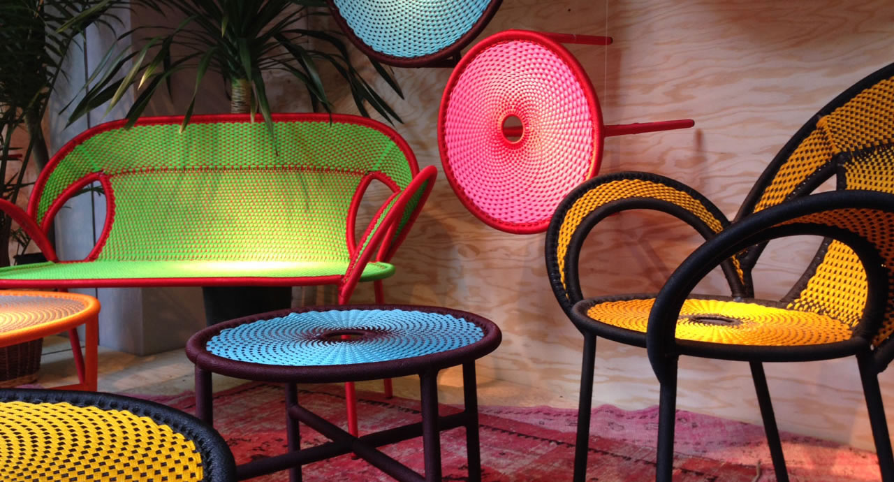 这个椅子的形状,尤其是扶手的形状设计,灵感来源于雄性鸵鸟在求偶时所跳的舞蹈,banjooli的扶手如同雄性鸵鸟伸出了翅膀,向雌性展示它们的美丽。Banjooli是M 'Afrique的一部分,由设计师设计的一系列椅子,由非洲手工编织者使用渔网的纱线生产。纯手工编织,不完美,但真实。