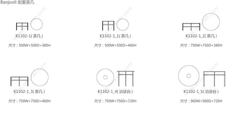 Banjooli- Tavolino 系列尺寸/示意图