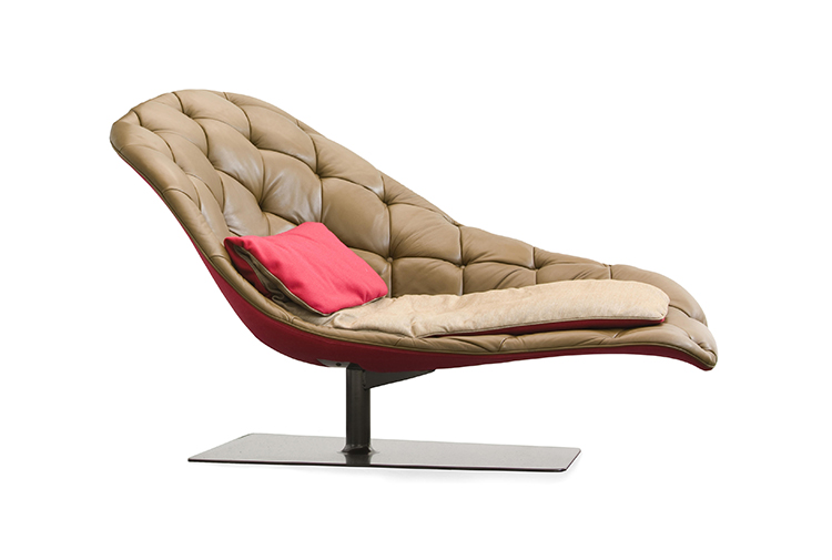 帕特丽夏·厄奎奥拉采用的是一种全新的旋转方式,革命性地改变了这一概念,她设计了一系列的产品,这些产品的形状看起来是液态的,就好像它们在框架上融化一样,以制造柔软的,舒适的,几乎随意的线条,这些布料和皮革都用按钉固定在外壳上。这些碎片似乎披着披在肩上的披巾,座椅上有各种重叠的软垫:几乎是对其覆盖层的设计、层叠的皮革和其他材料、颜色和面料类型的关注。这是一种奢侈的拼贴,当它穿过时,就会给人一种游牧式的全球精神。