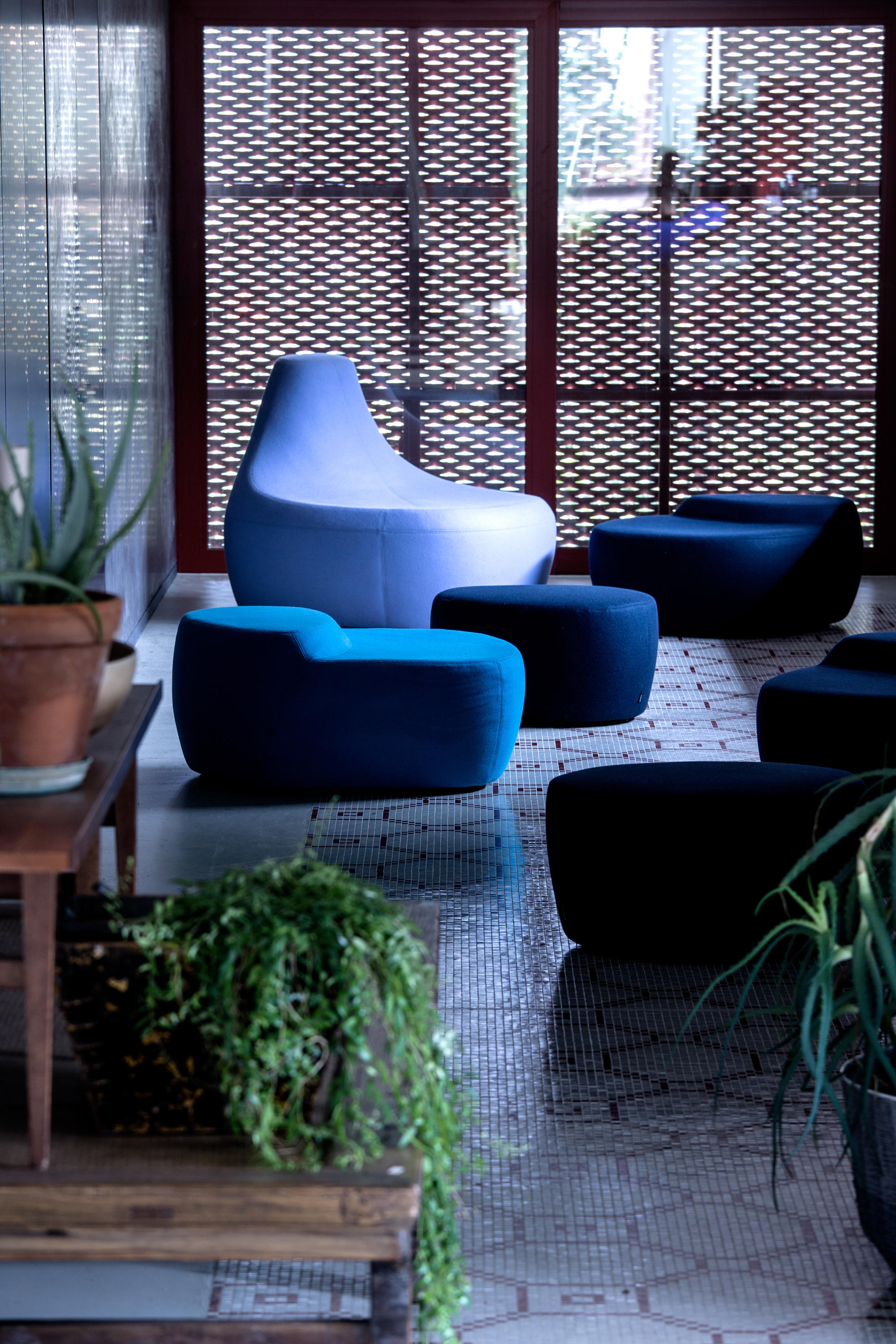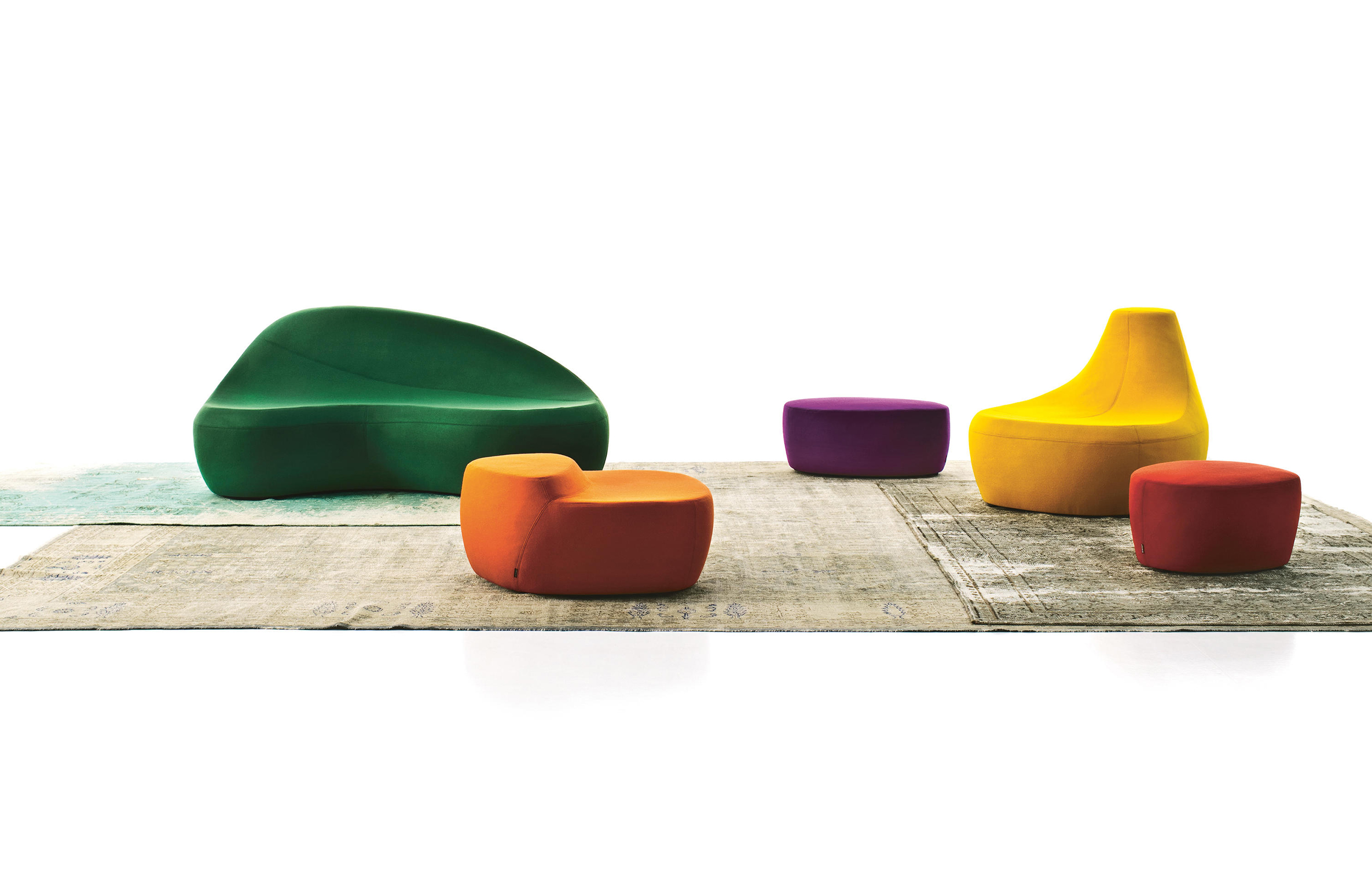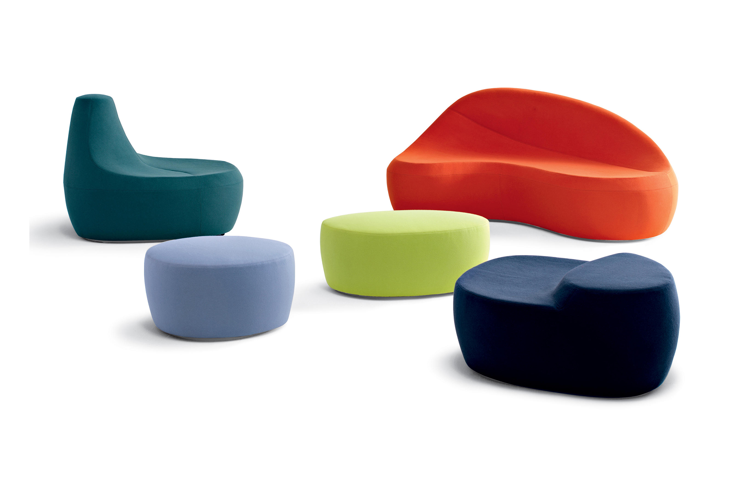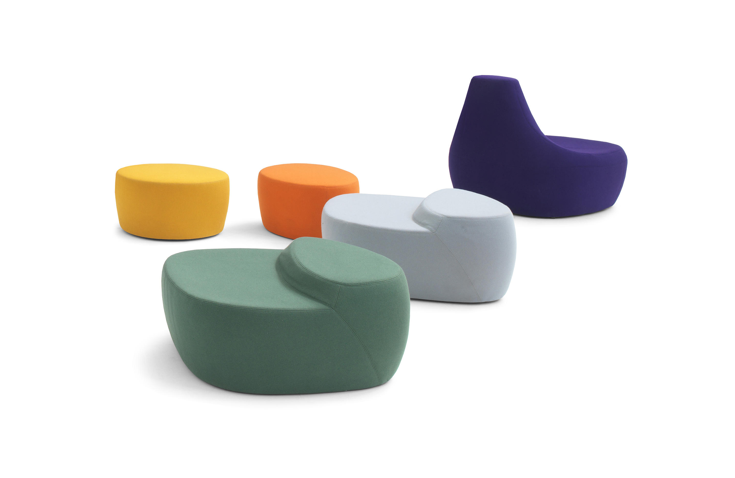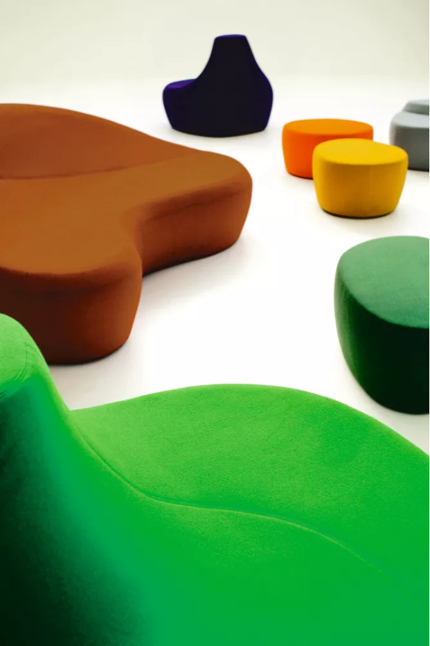 第一个Saruyama,它的地貌形态,一个非常抒情的物体,是由三个模块组成的,它们结合在一起,形成一个巨大的圆形岛屿,不同的一个从另一个中提出对座位的自由诠释。