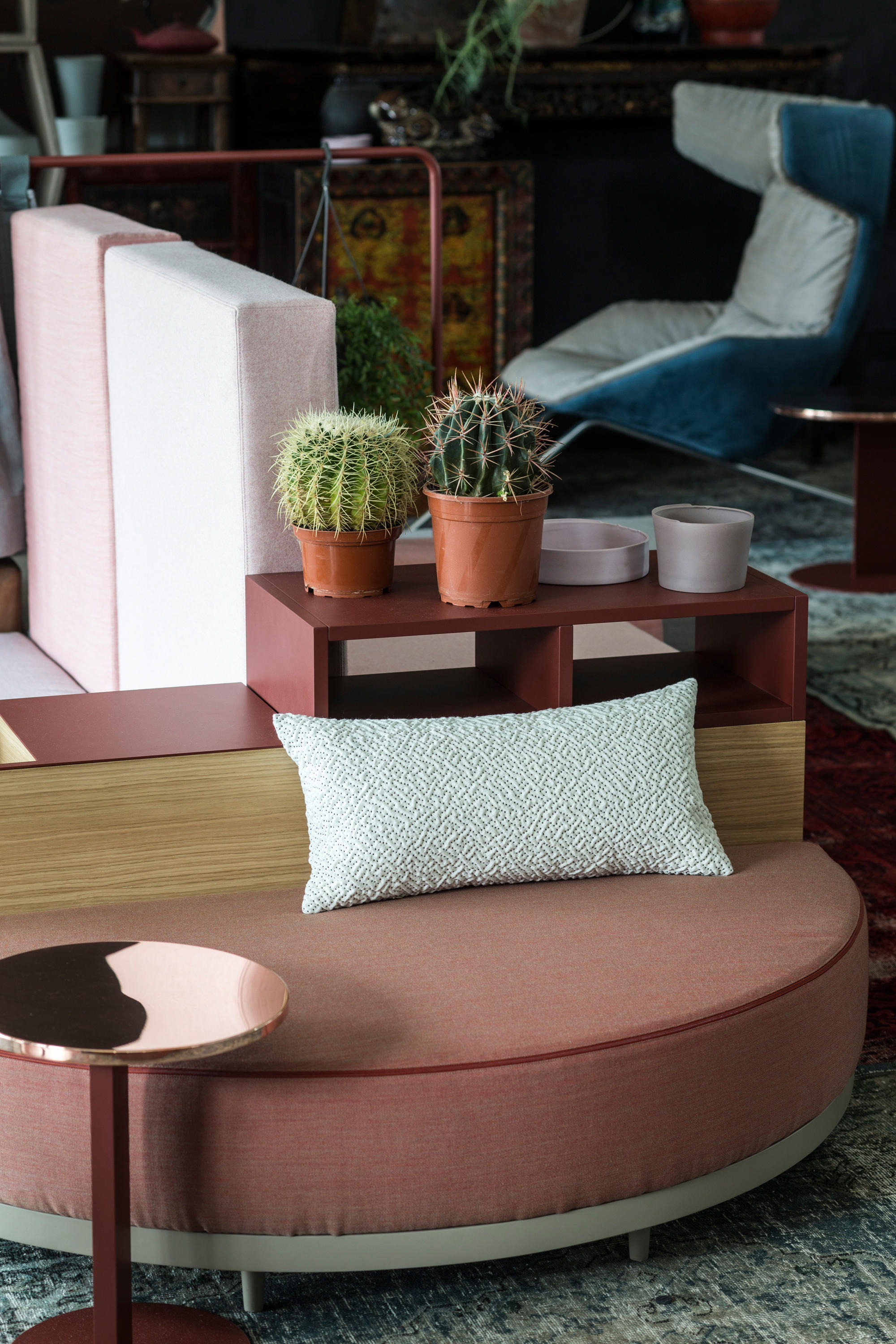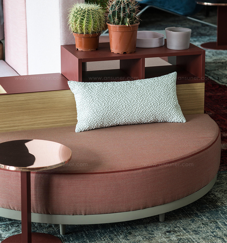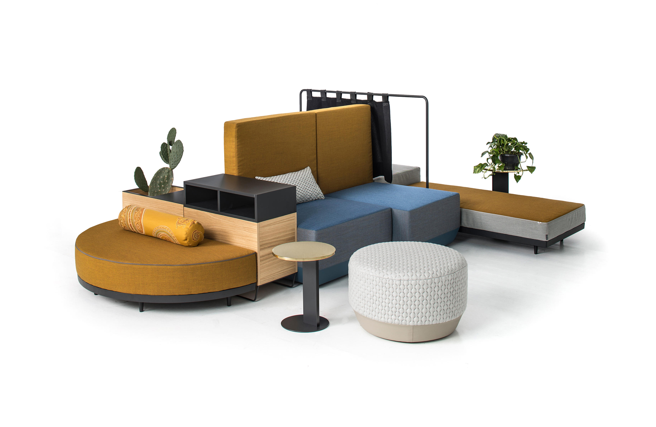 设计相互作用,轨迹控制空间。比基尼是一种风景,它是时代的产物,是它所代表的社会。无论是在等候区还是在家中使用,座位系统是绝对灵活的,因为不需要空间的布局和座位组件的排列。这些组件在外观和功能上各不相同,因此,它们可以在任何设置中使用。凳子、桌子、衣架、容器、架子、屏风、工作台、座椅:每一个元素都结合在一起,创造互动和交流。多种功能和含义的结合意味着沙发作为看电视的家具或简单的休息场所的概念发生了革命性的变化,使它成为互动的核心。