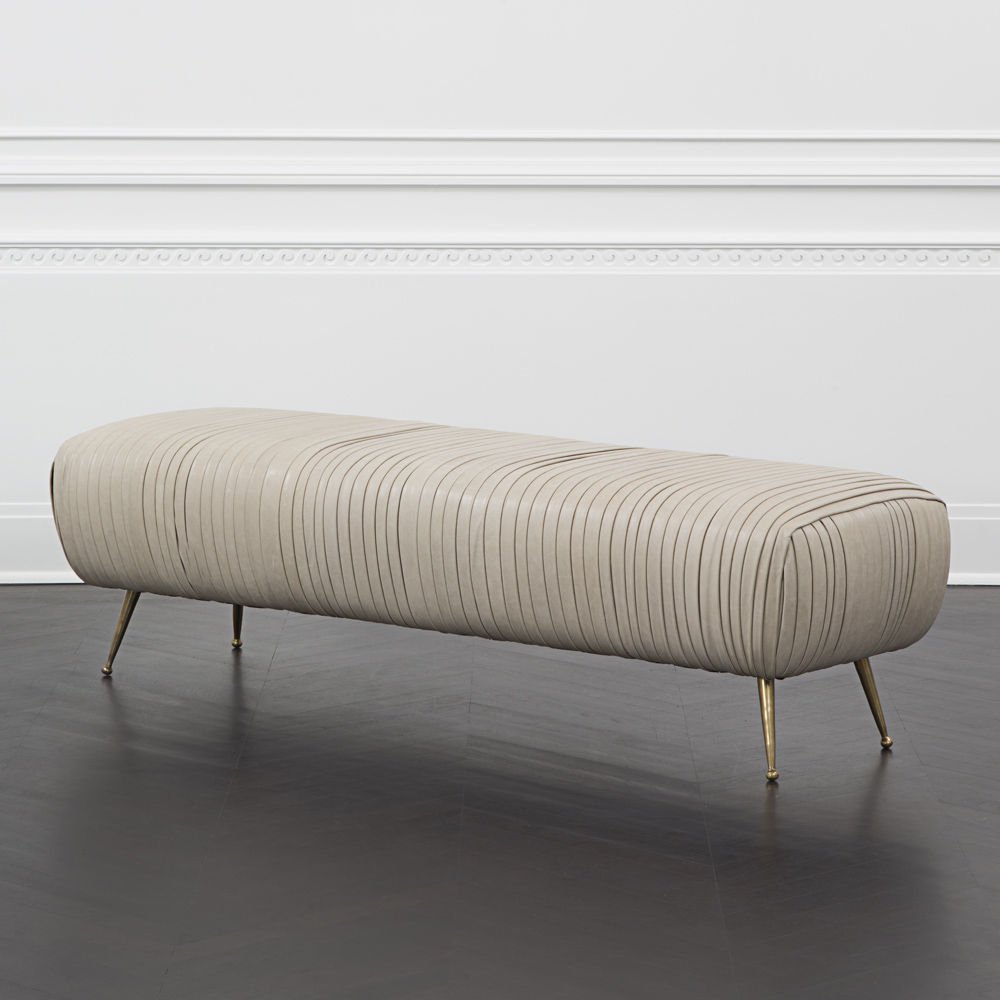 Souffle Bench的精致线条采用标志性皱折皮革细节设计。 全面的蔬菜染色小羊皮手工缝制在框架上。 这款精致细腻的豪华长凳坐落在坚固铸青铜的锥形腿上。 精致的比例非常适合入口通道,床尾或餐凳。