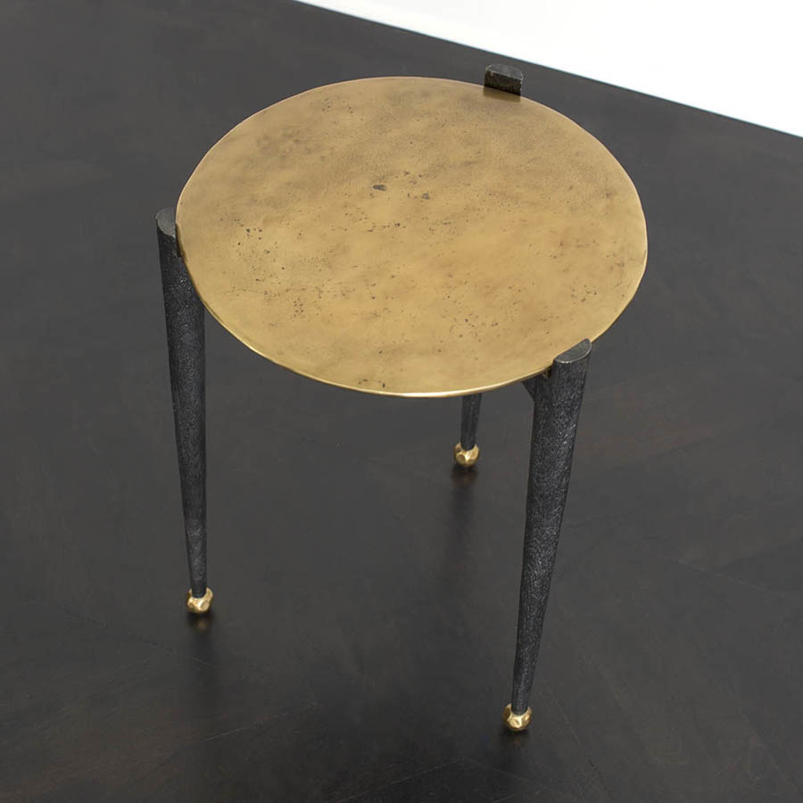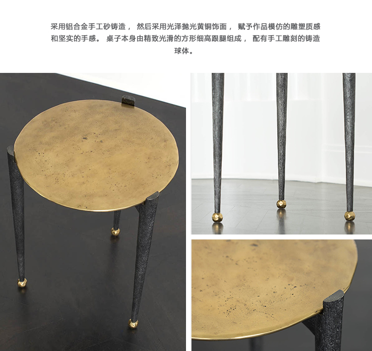 可能是我们所有边几中最复杂的,Garcon桌子有三条腿用黑色铝铸造,逐渐变成黄铜球脚。 腿部的纹理就像雕刻的木头和坚固的青铜顶部,带有抛光的青铜色,具有手工锻造的雕塑品质。