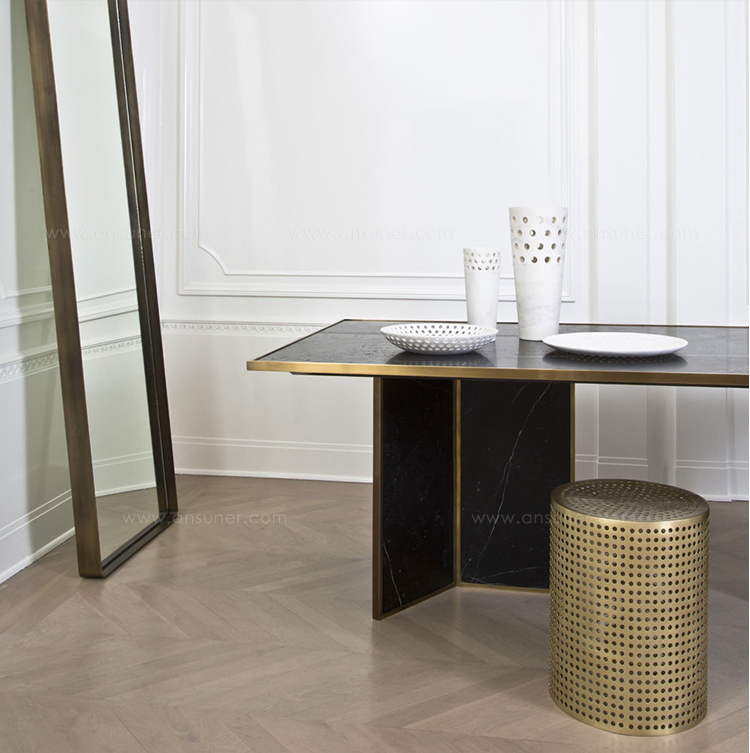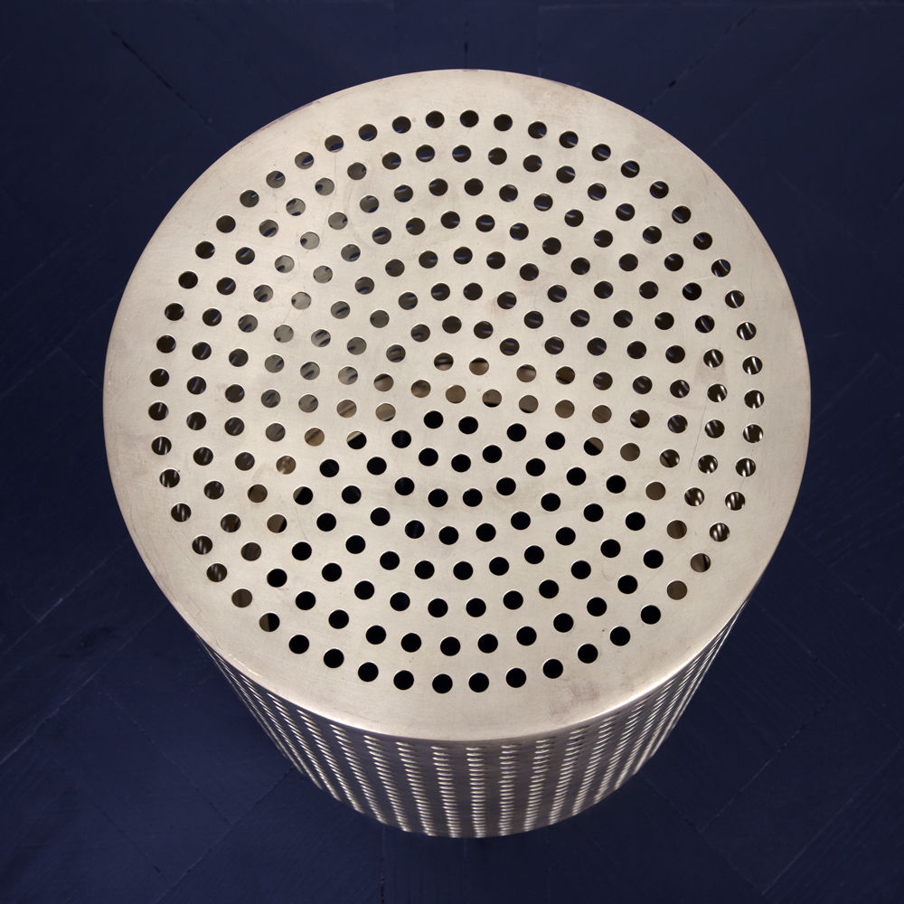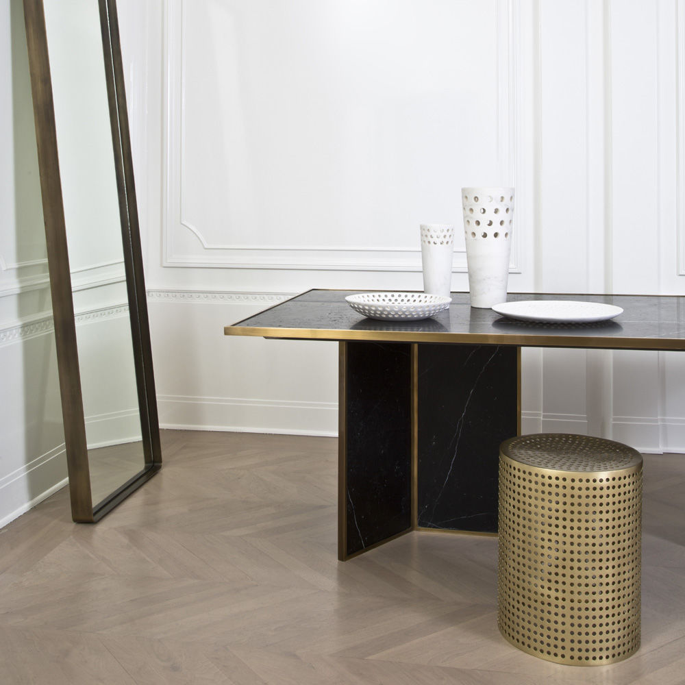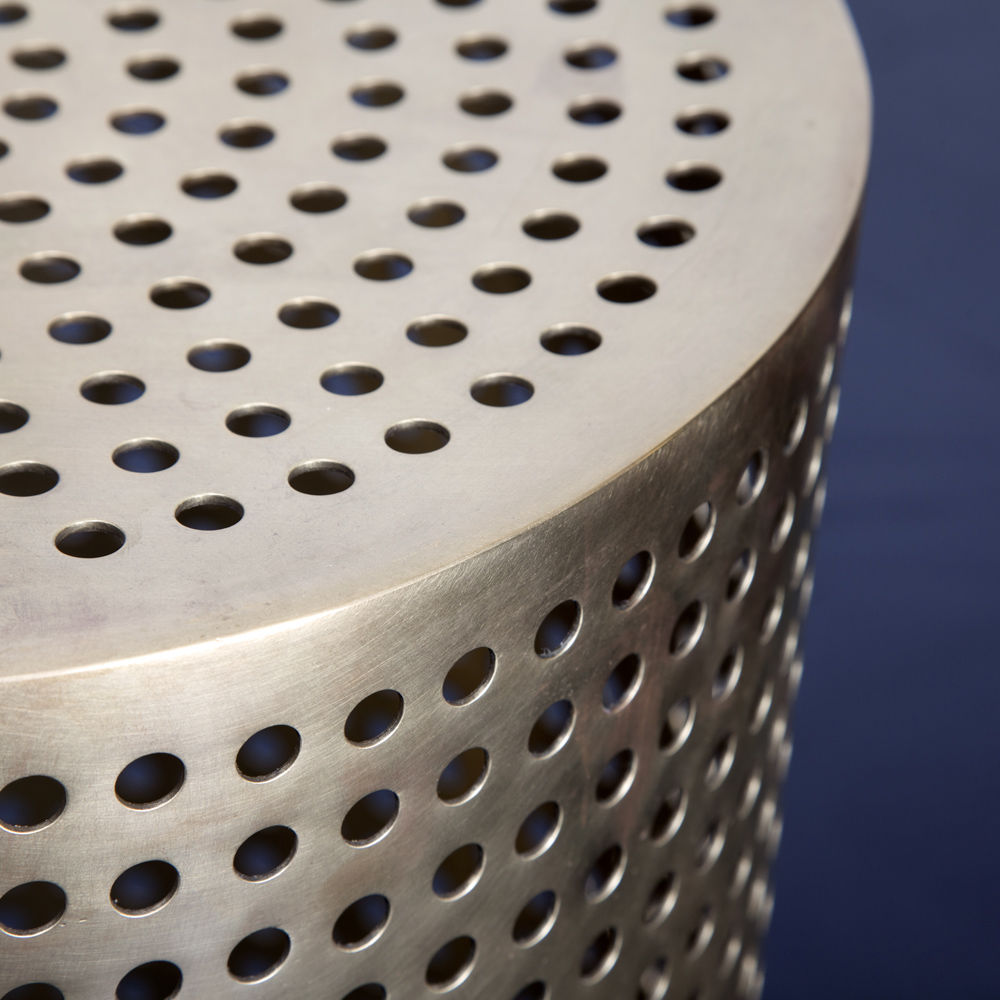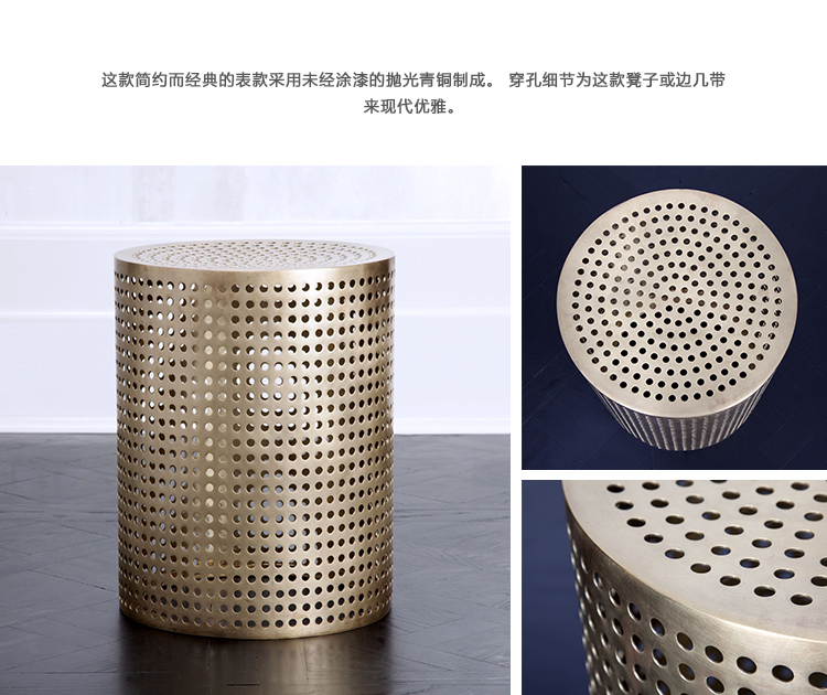 这款简约而经典的表款采用未经涂漆的抛光青铜制成。 穿孔细节为这款凳子或边几带来现代优雅。