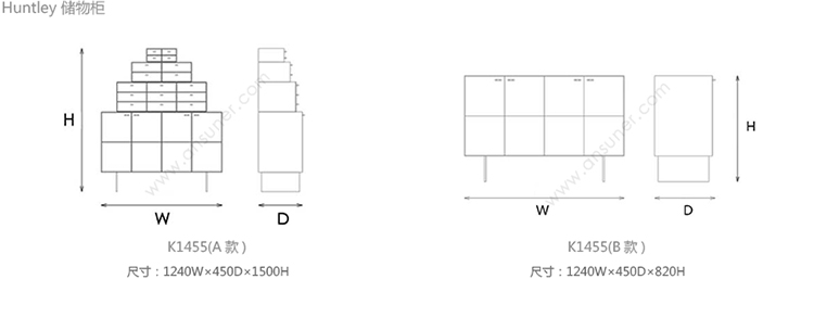 Huntley 储物柜 系列尺寸/示意图