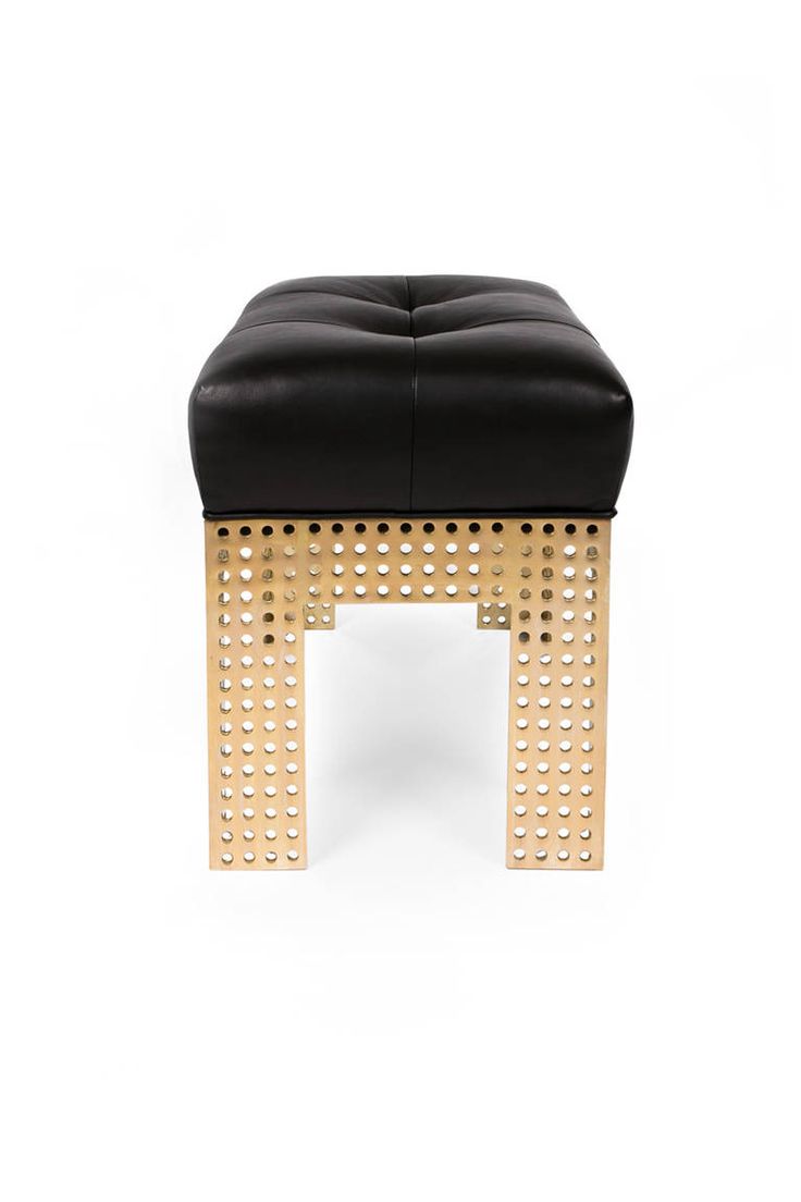 来自我们的标志性精密系列的未经剔除的抛光青铜搭配奢华的皮革内饰,营造出性感的现代经典。 穿孔细节赋予这件作品独特的优雅,使其成为完美的重点长凳或脚凳。精密脚凳框架由天然青铜制,可以用各种不同的皮革或面料装饰。