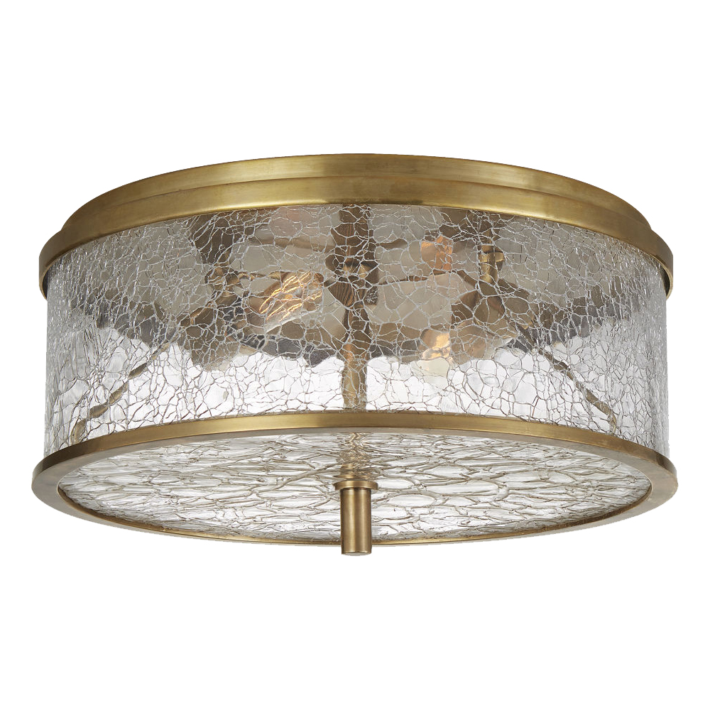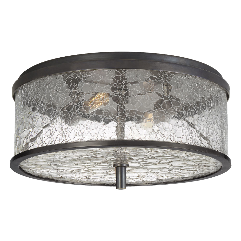Liaison Medium Flush Mount以其干净的建筑金属细节和破碎玻璃的动态美感,模糊了现代和经典的线条。 这种天花板固定装置适用于室内和室外空间,有青铜和古铜色。