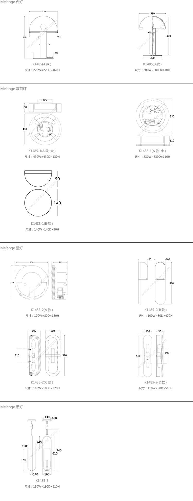 Melange 台灯 系列尺寸/示意图