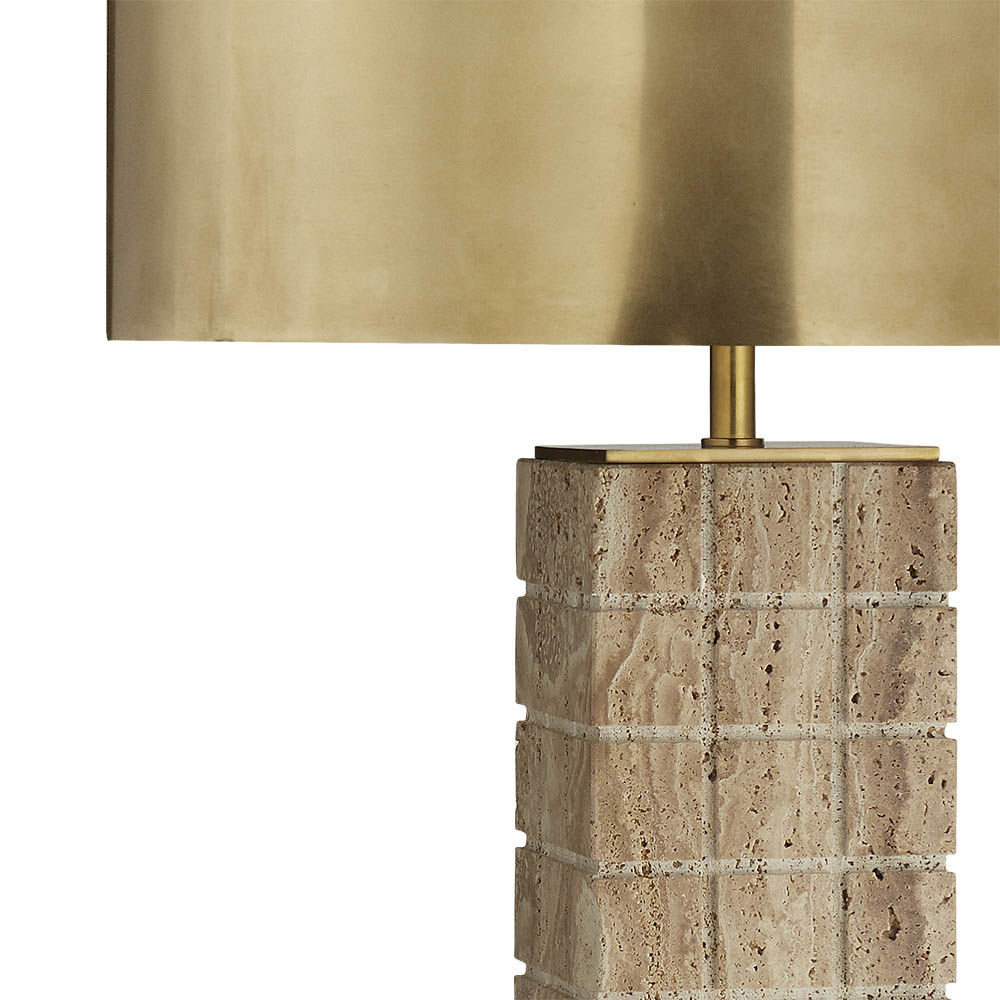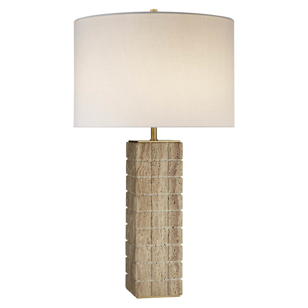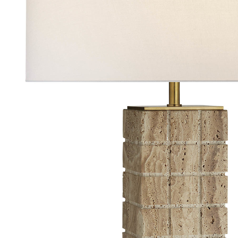 Pietra Table Lamp(彼得拉台灯)采用天然石材和坚固的建筑几何形状和谐搭配。 这款灯具有铸石灰石底座,古董黄铜细节,可选白色亚麻布或古董黄铜色灯罩,配有黄铜扩散器。