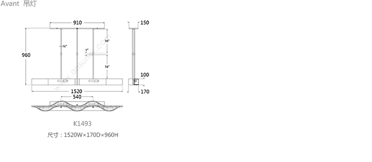 Avant 吊灯 系列尺寸/示意图