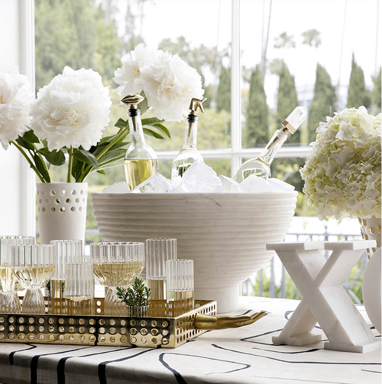 这款宽大比例的香槟碗采用坚固的大理石手工雕刻而成,并饰有柔软的罗纹外观。 其罗纹外观为碗提供了罕见的精致,大理石的优雅将与您的家居相得益彰。 每件作品都是独一无二的材料,旨在适应任何数量的娱乐功能和场合。 香槟酒杯可容纳冰块,最多可装四瓶香槟,食物安全。 大理石是一种天然材料,因此可以发生标记和着色的变化,使每个碗成为独一无二的。