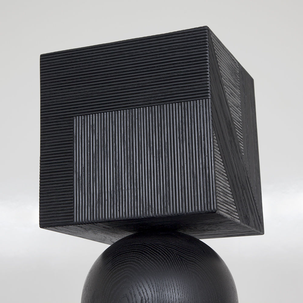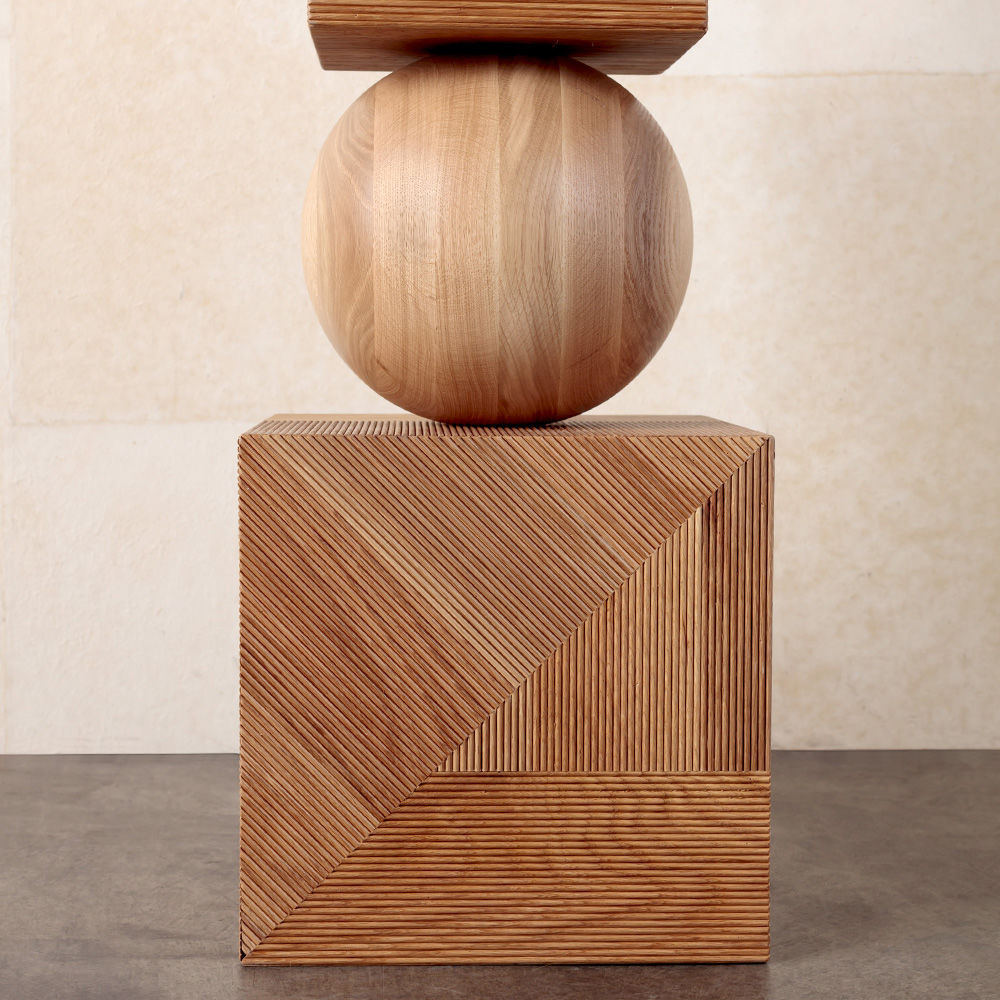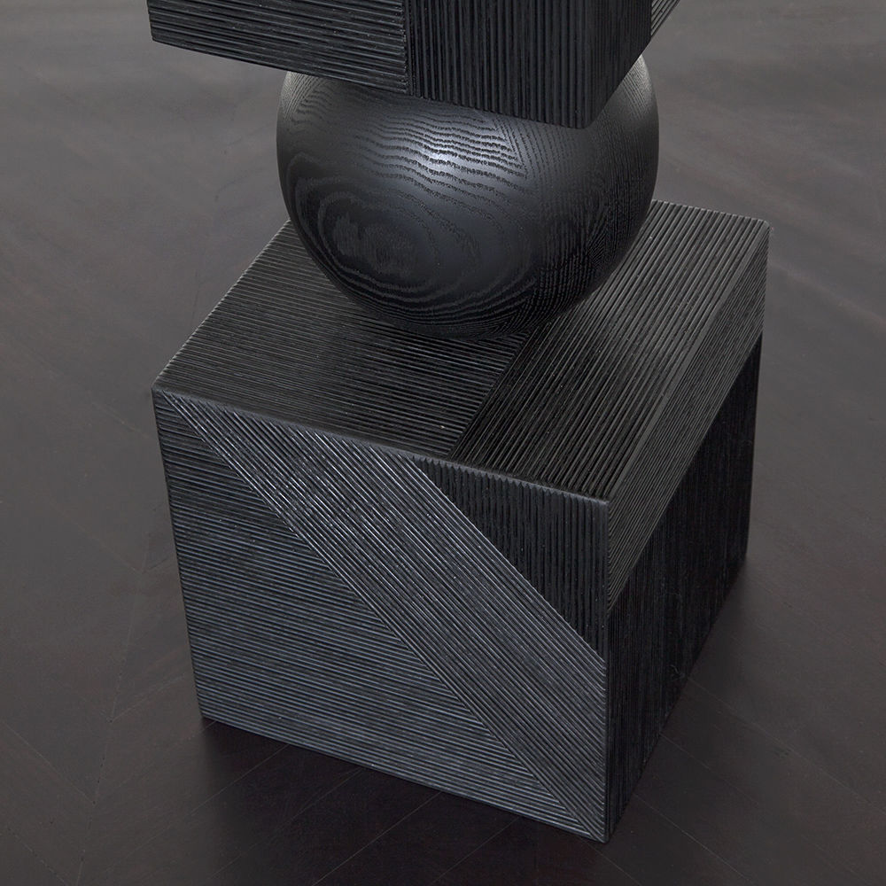 Tephra图腾是专业制作的几何落地雕塑,采用精美罗纹橡木制成。 三个实木橡木球形分隔四个盒子,随机镶嵌罗纹橡木角板,高6英尺。 这些戏剧性的艺术品均由工匠木工手工制作而成。 有天然和乌木饰面可供选择。
