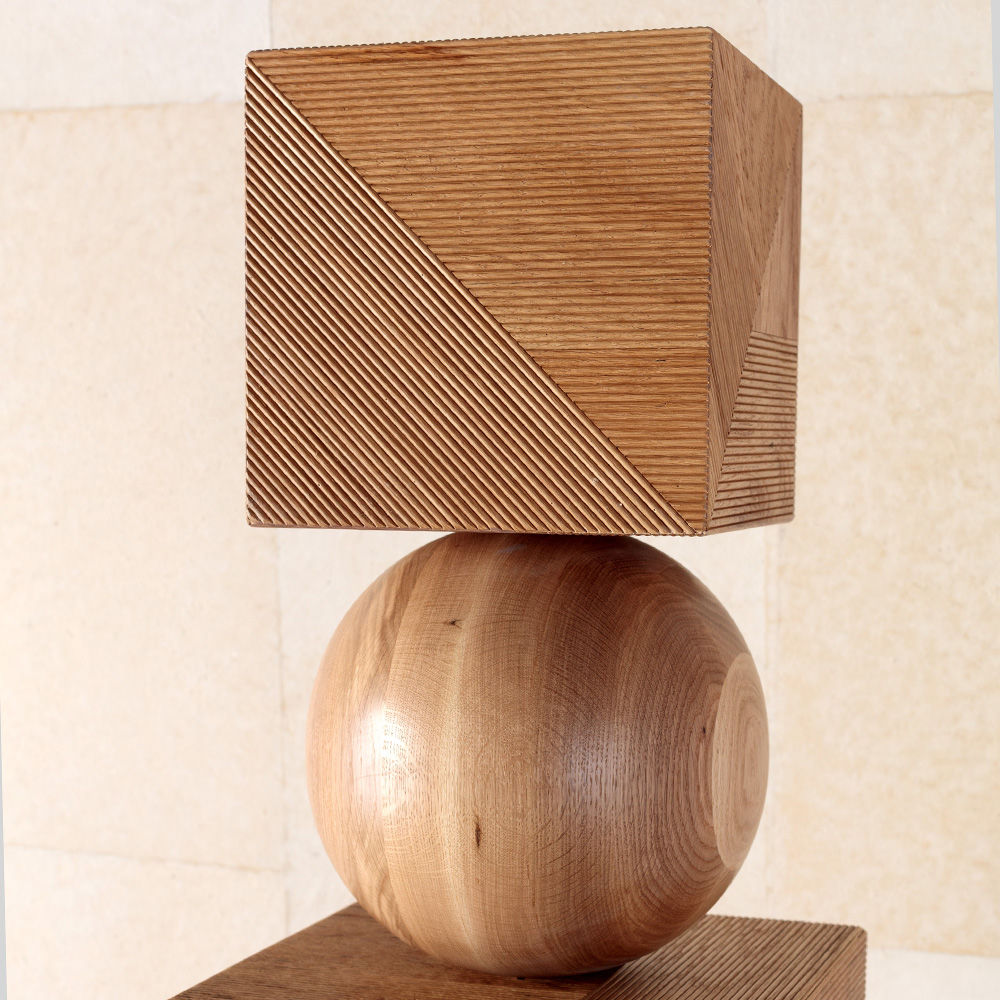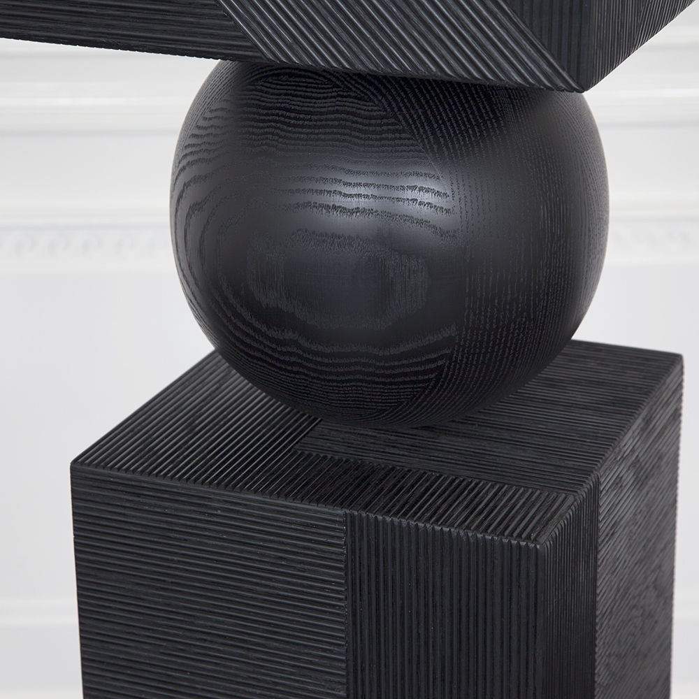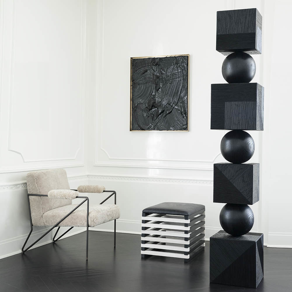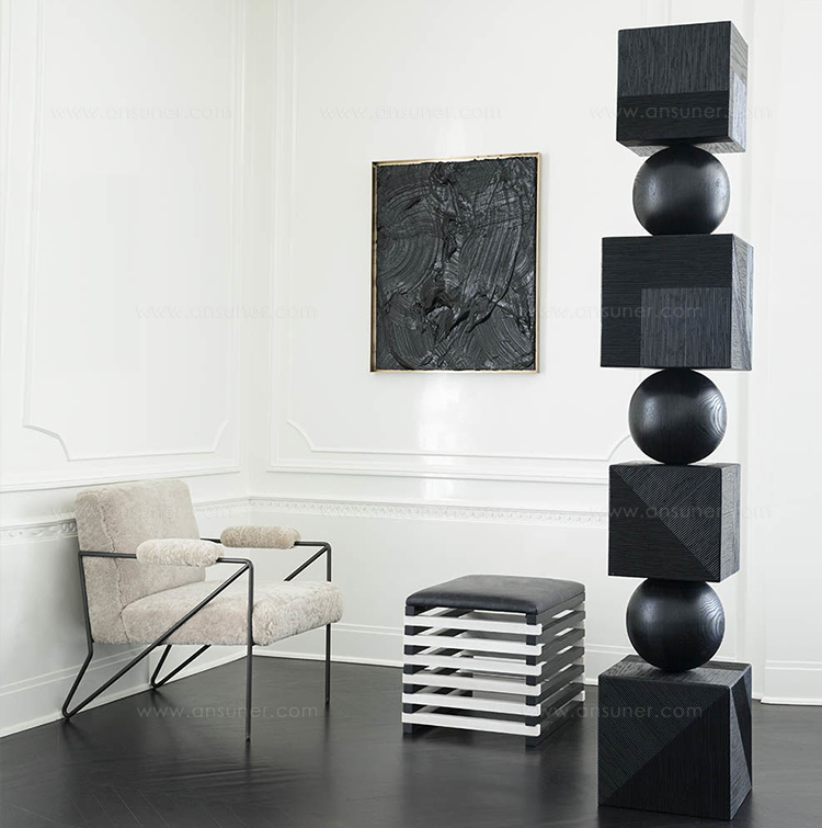 Tephra图腾是专业制作的几何落地雕塑,采用精美罗纹橡木制成。 三个实木橡木球形分隔四个盒子,随机镶嵌罗纹橡木角板,高6英尺。 这些戏剧性的艺术品均由工匠木工手工制作而成。 有天然和乌木饰面可供选择。