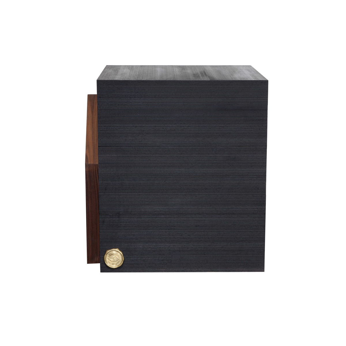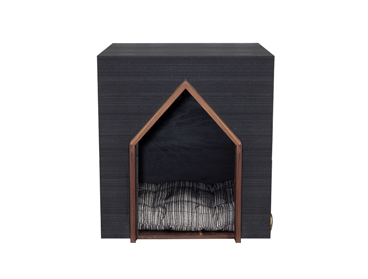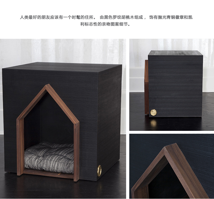 人类最好的朋友应该有一个时髦的住所。由黑色罗纹胡桃木组成,饰有抛光青铜徽章和凯利标志性的亲吻图案细节。