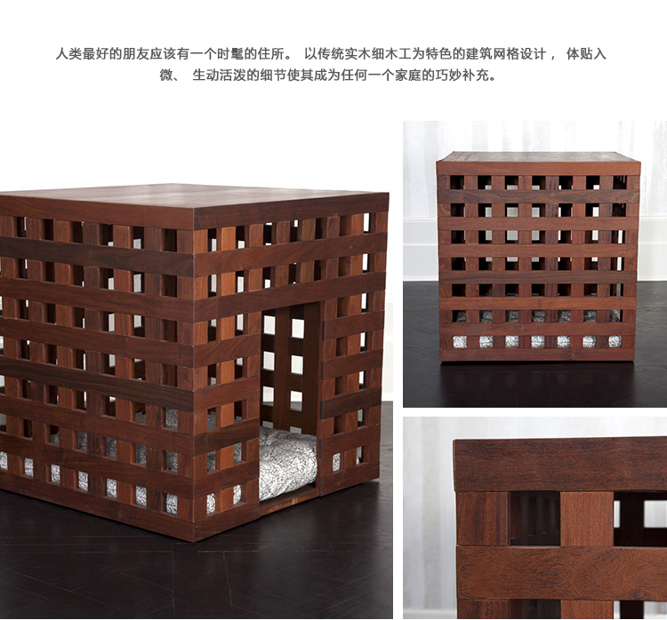 人类最好的朋友应该有一个时髦的住所。以传统实木细木工为特色的建筑网格设计,体贴入微、生动活泼的细节使其成为任何一个家庭的巧妙补充。