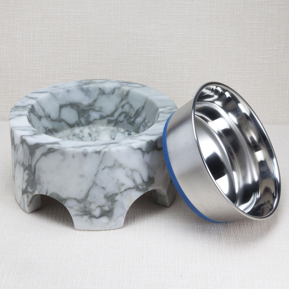 凯利喜欢将日常用品提升为艺术品,这款独特的宠物配件让任何狗屋看起来都很时尚。 由手工雕刻的大理石和不锈钢碗组成,是家庭的一个周到和充满活力的补充。
