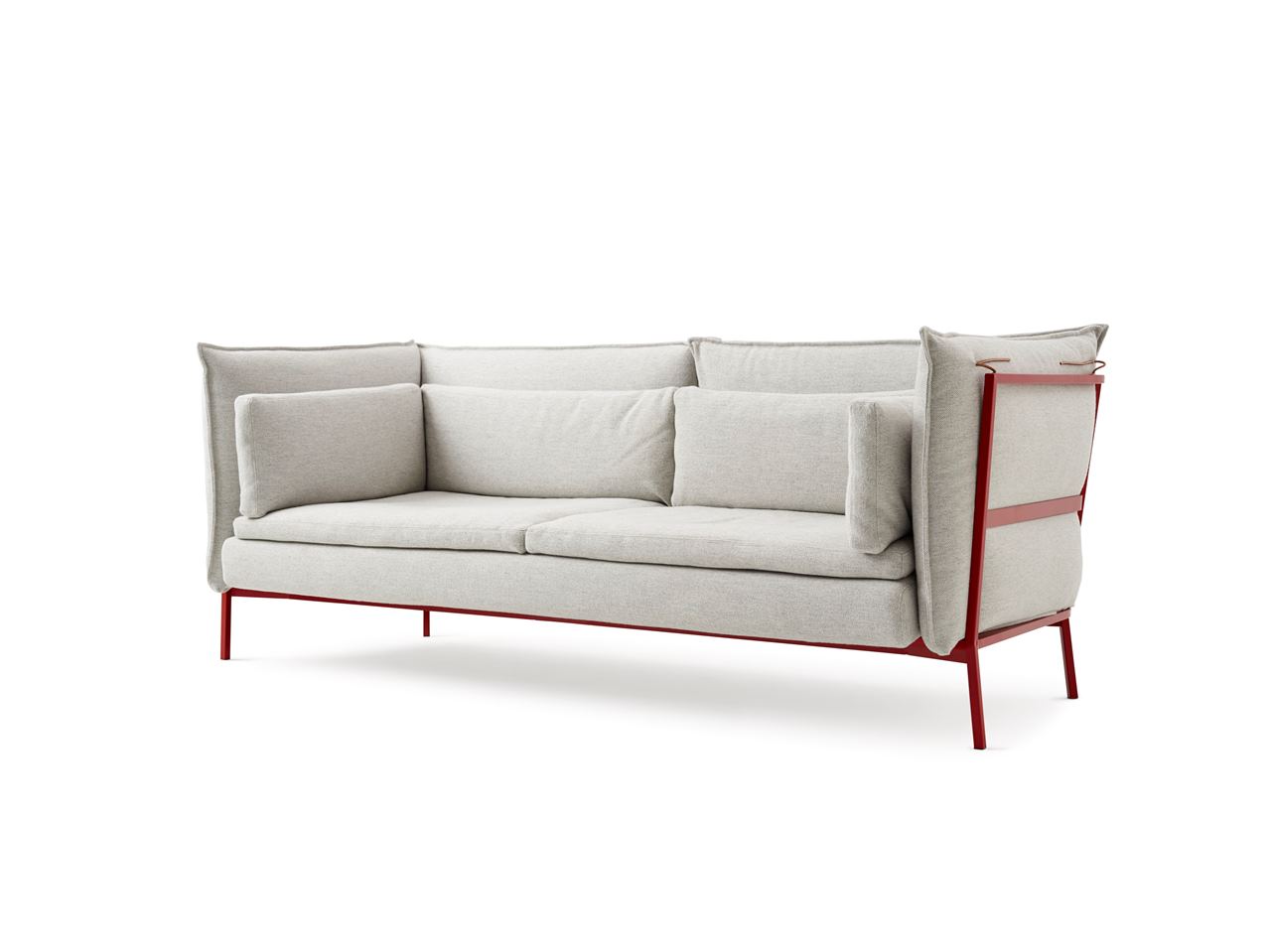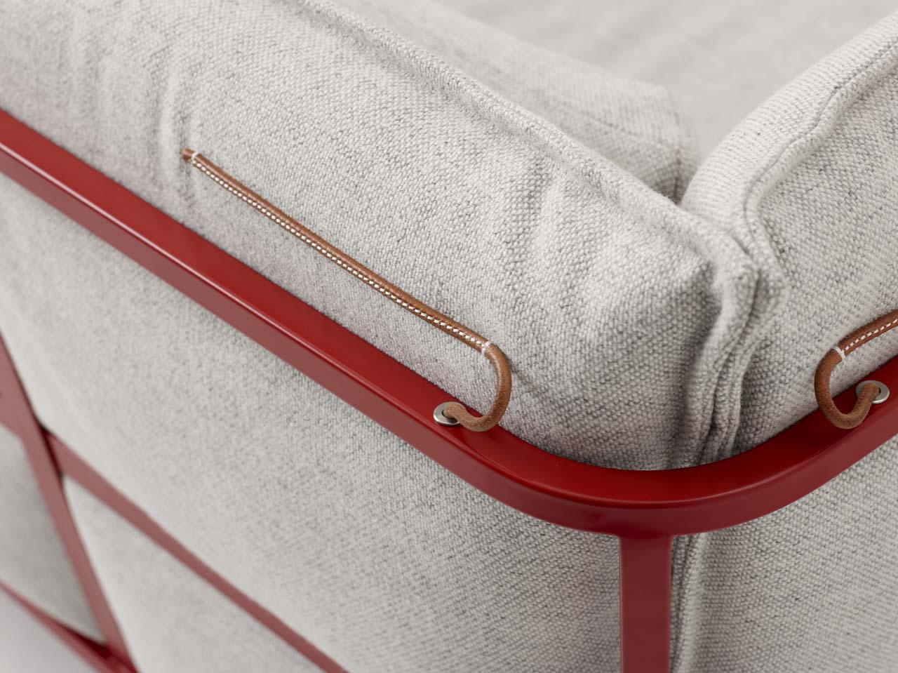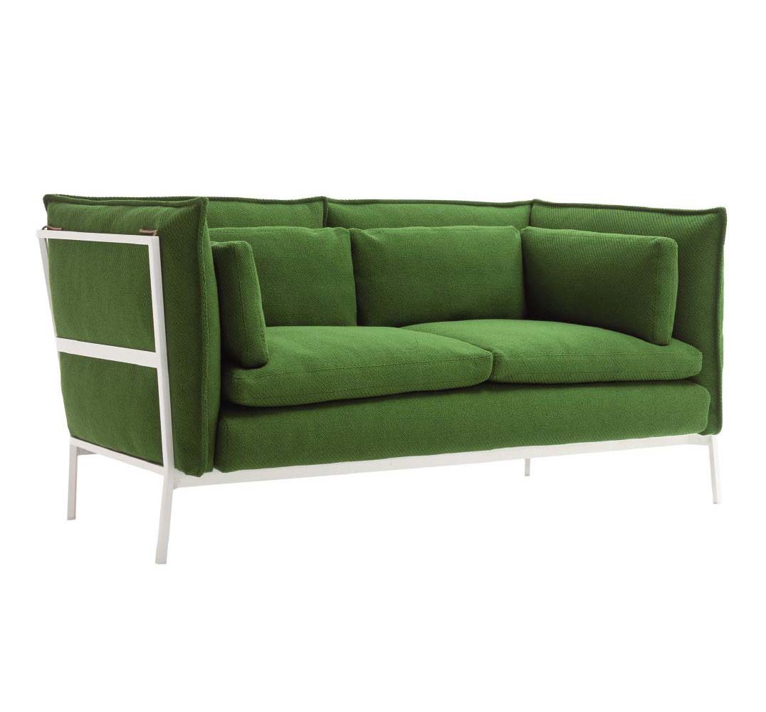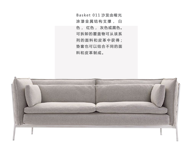 Basket 011沙发由哑光涂漆金属结构支撑,白色,红色,灰色或黑色。 可拆卸的覆盖物可从该系列的面料和皮革中获得; 垫套也可以结合不同的面料和皮革制成。