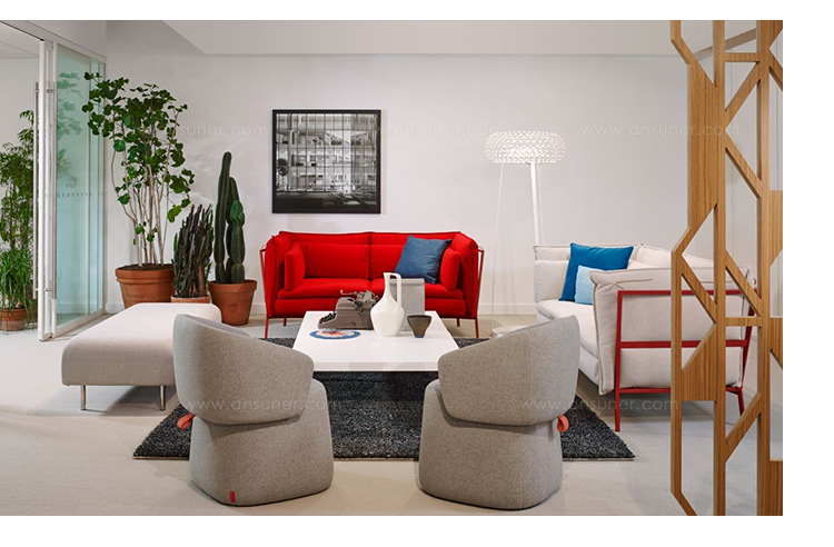 使用由罗南和Erwan Bouroullec设计的Basket 011沙发,保证了最佳的舒适度和最大的色彩定制。