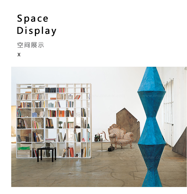 适用于单独使用,几乎可以雕刻,书架也可以成为一个连续的书柜,当与许多模块组成,或用于划分空间,同时仍然允许光和空气通过。