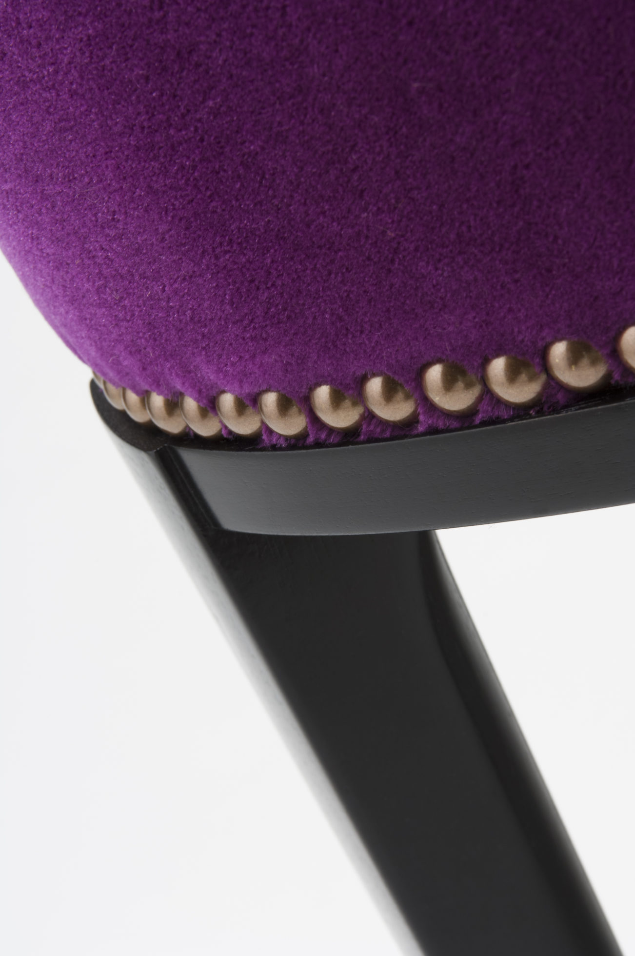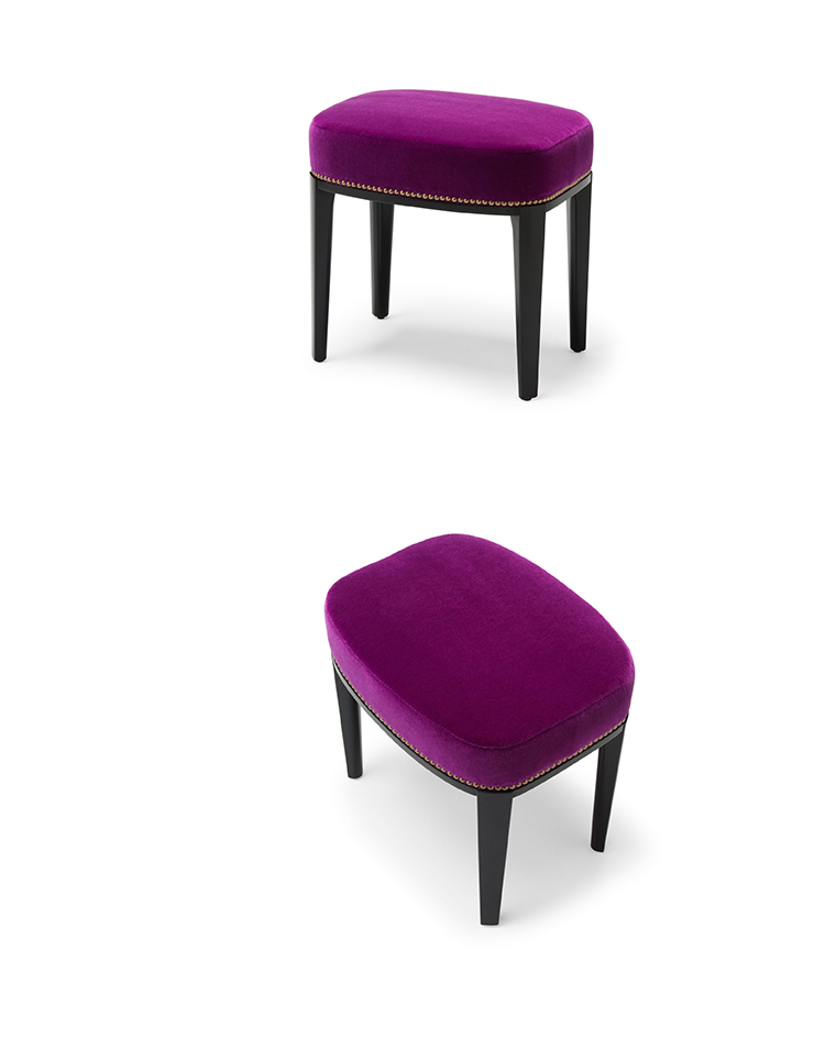 Babo是一个简单的、优雅的凳子都具有美国黑胡桃木、橡木雕刻手腿和一圈装饰钉在座位。