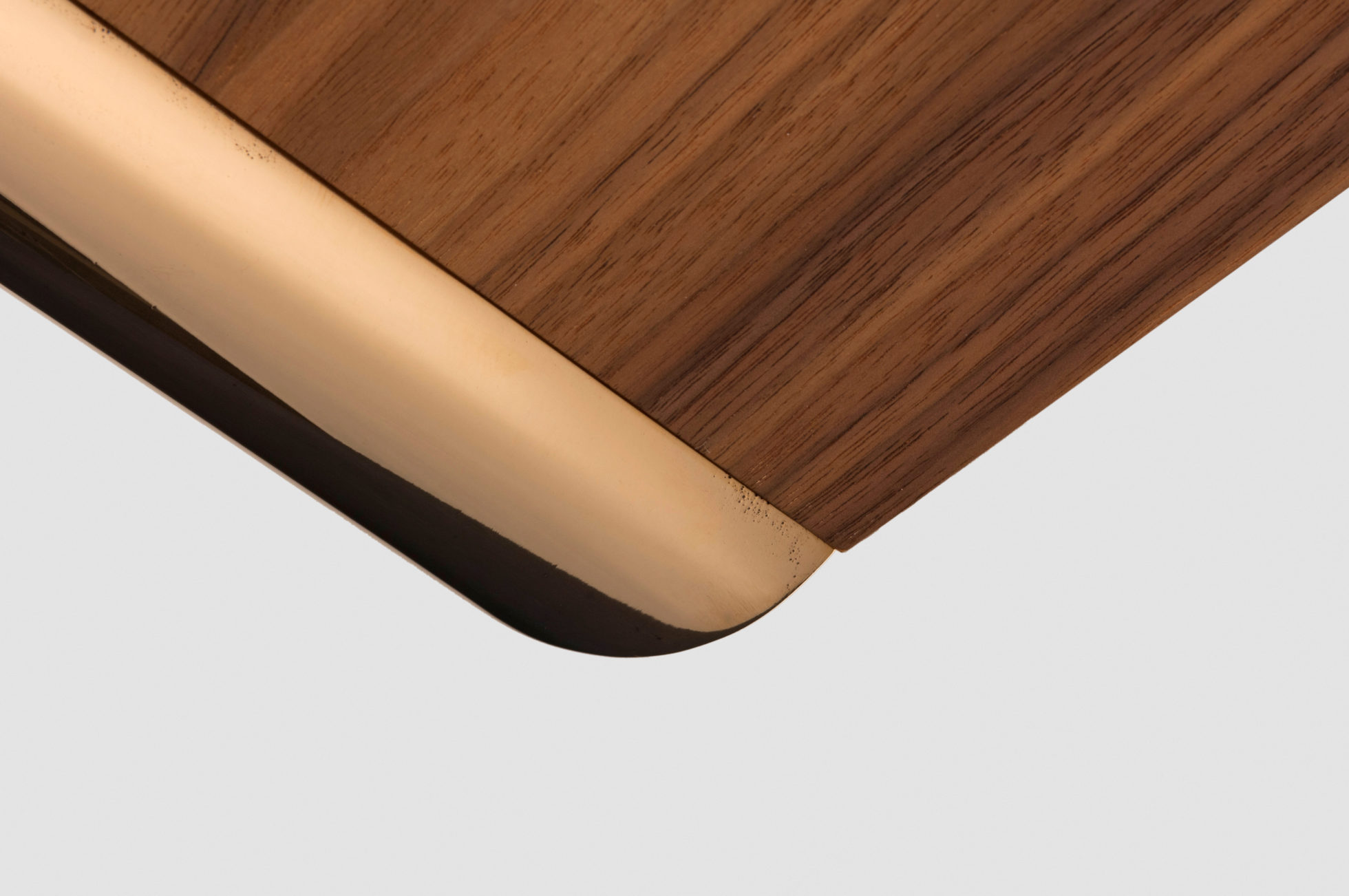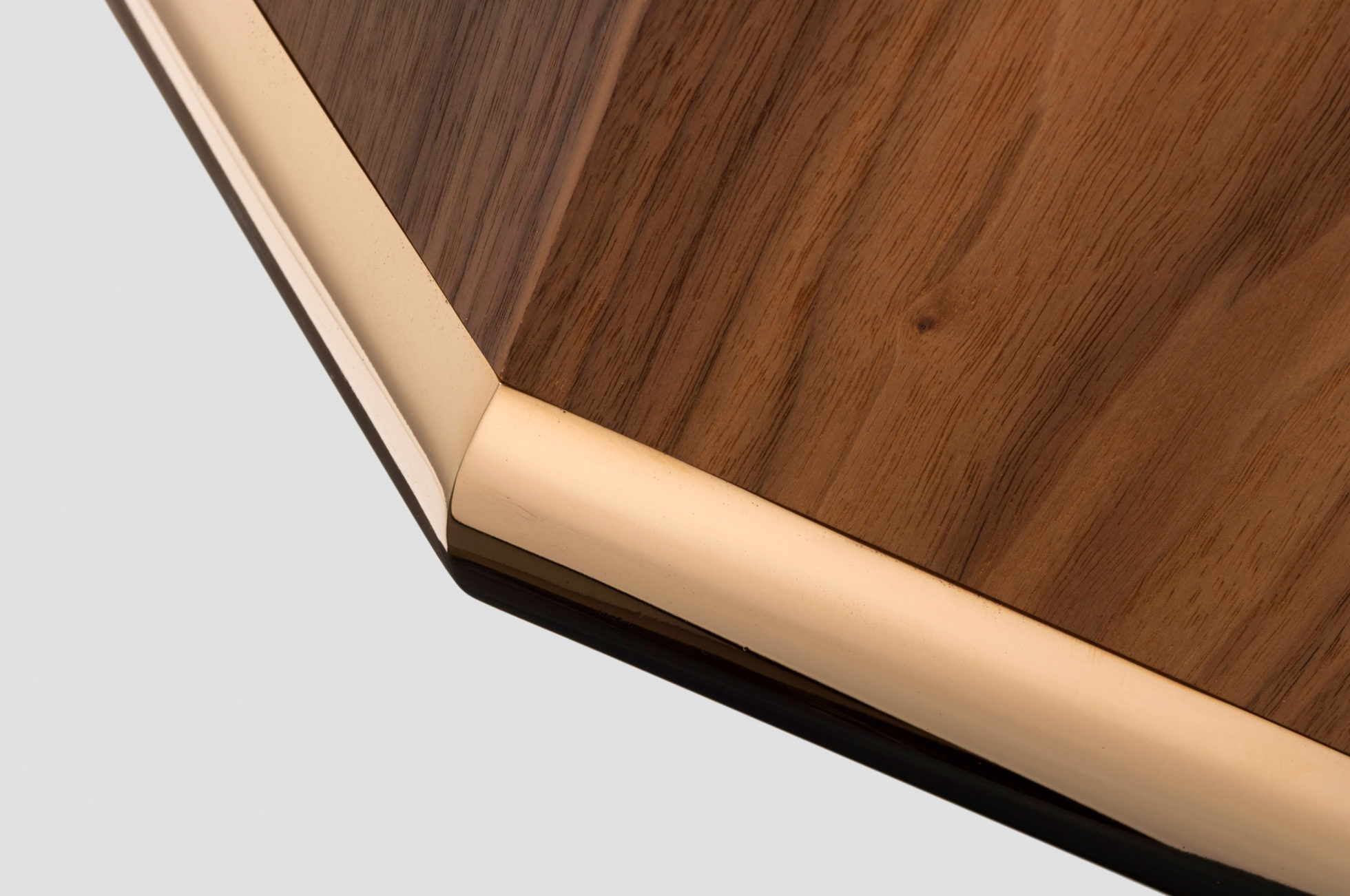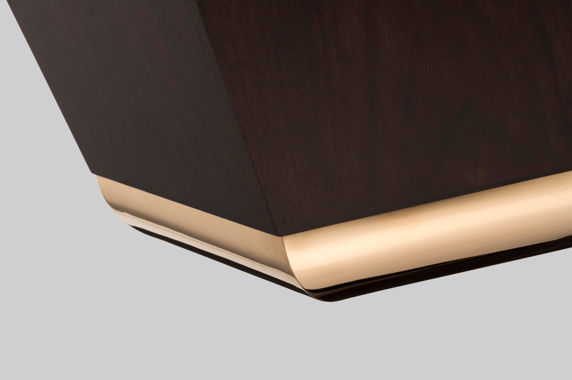 精美的宝石般的铸造金属边桌,配有坚固的美国黑胡桃木底座。 每个灯笼表都是在英格兰的专业航海铸造厂单独铸造和完成的。