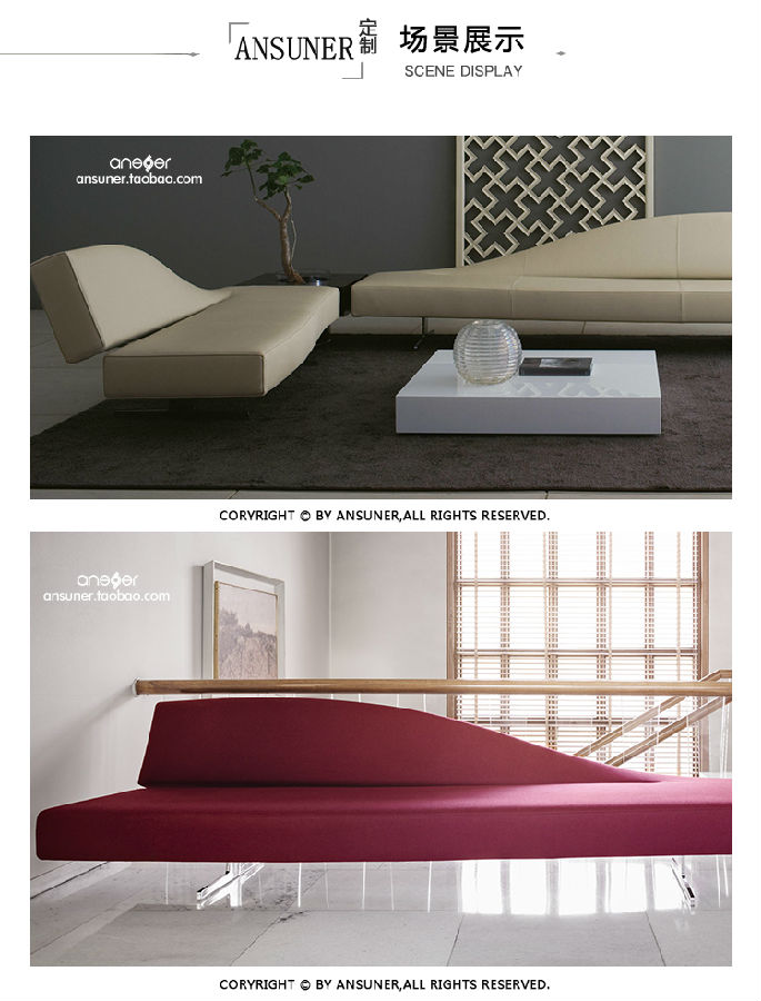 内部框架采用钢材料,填料为不同密度的无CFC聚氨酯泡沫和喷胶棉。面层使用可拆换面料或皮革。