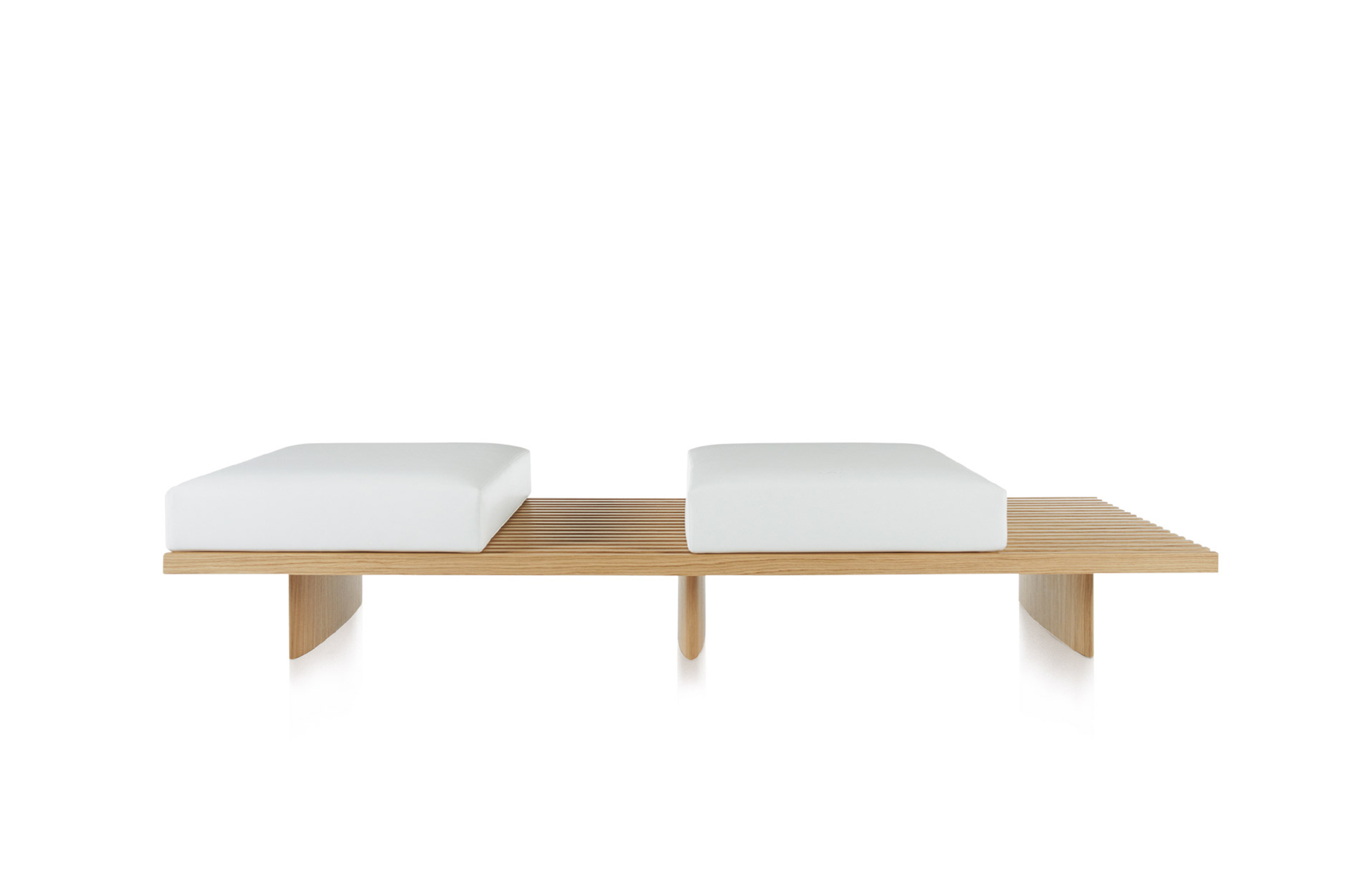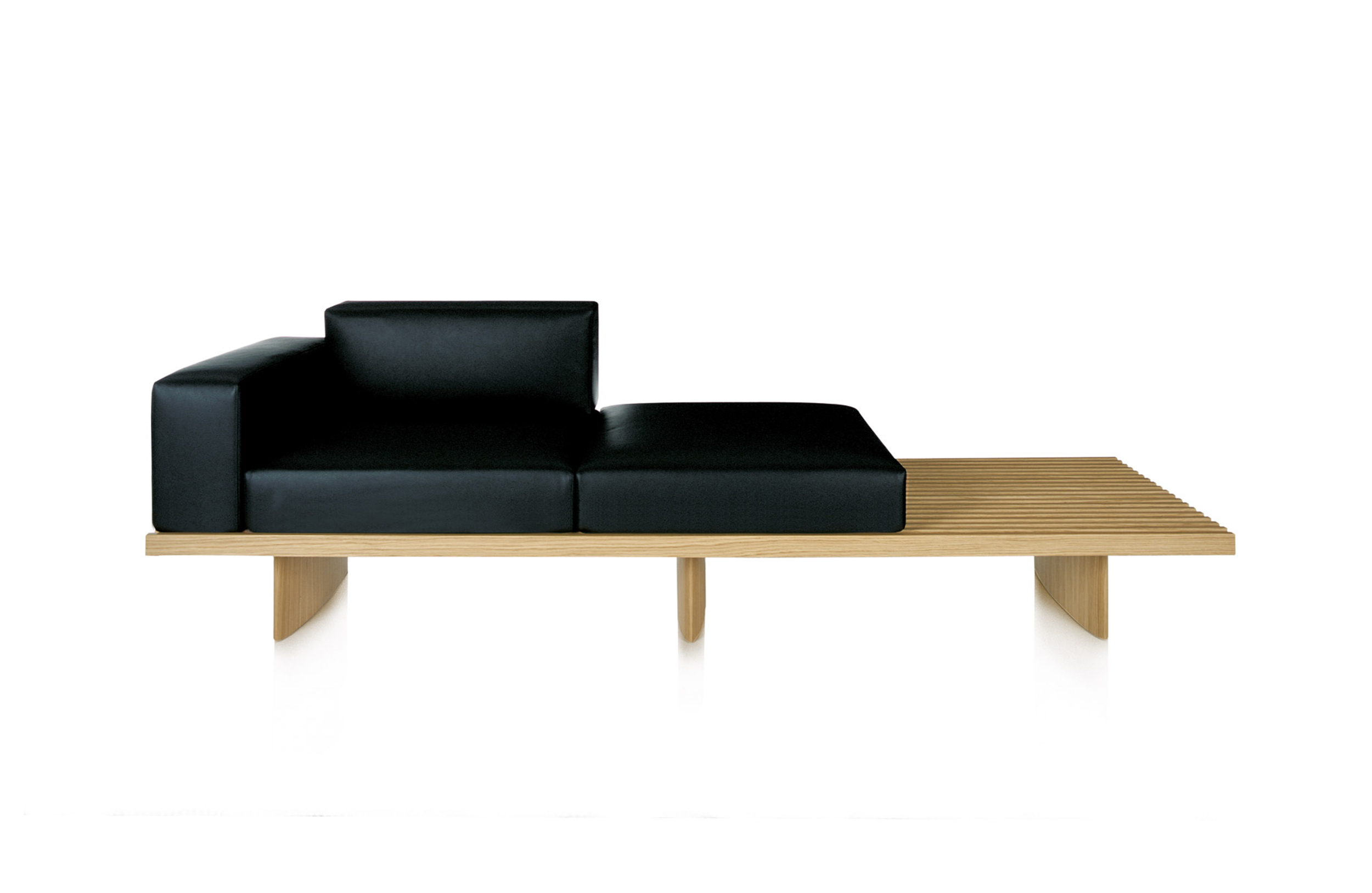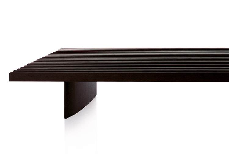 用作矮桌、长凳或和只需配备靠垫就能成为软榻的模块化系列。框架采用天然木色或黑色橡木。表面由19根板条组成;采用两条或三条支腿。软垫采用聚氨酯纤维和喷胶棉填充,用于扶手、座面,配对软垫: 一个座垫和一个靠垫。使用简单的固定装置就可将软垫固定于框架上。软垫可自由定位于表面的任何部分;因此,可使表面按照所需的尺寸用作座椅底座或顶面。