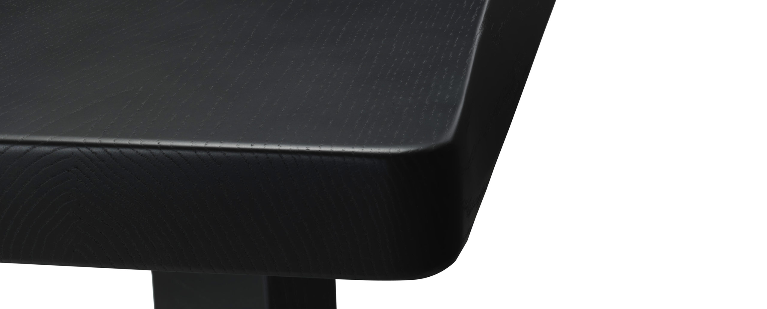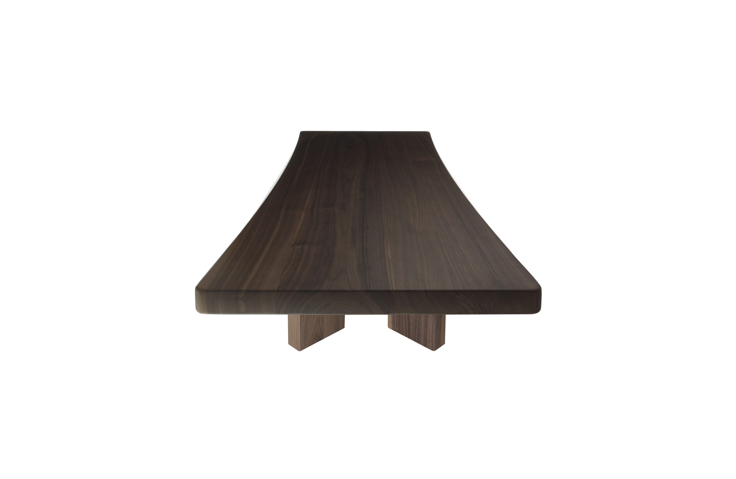 采用哑光黑色的珍贵木材或黑色实木橡木或美国黑胡桃木制造的矮桌。桌面厚度和凹面刻画了正式用语中的模型特征,并创造了令人讶异的轻盈感。该款矮桌是于1969年为日本驻巴黎大使馆设计的,这款咖啡桌是技术和中继合成的胜利。