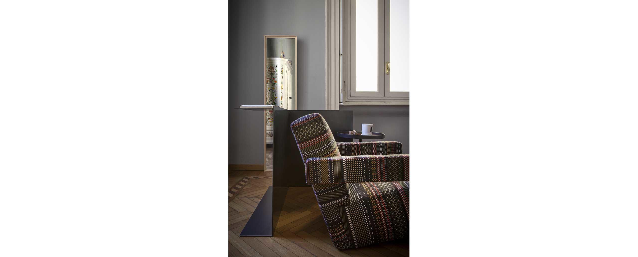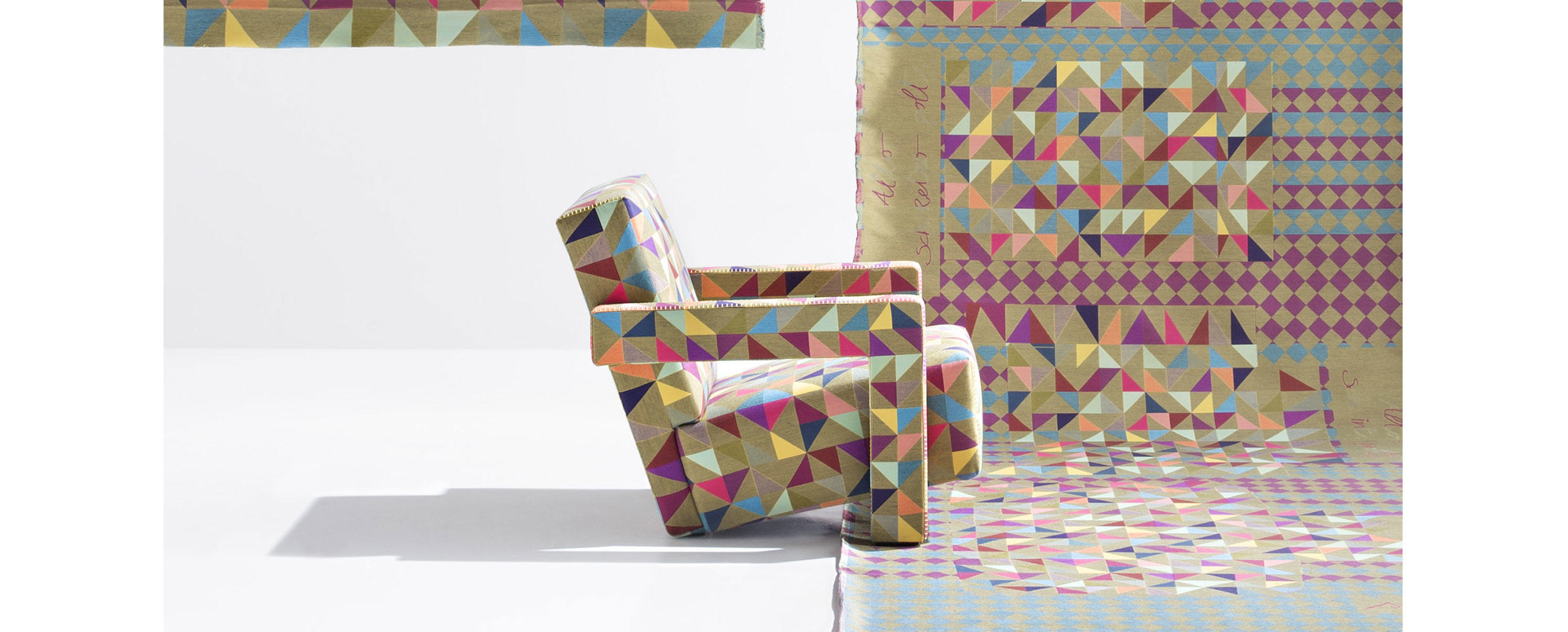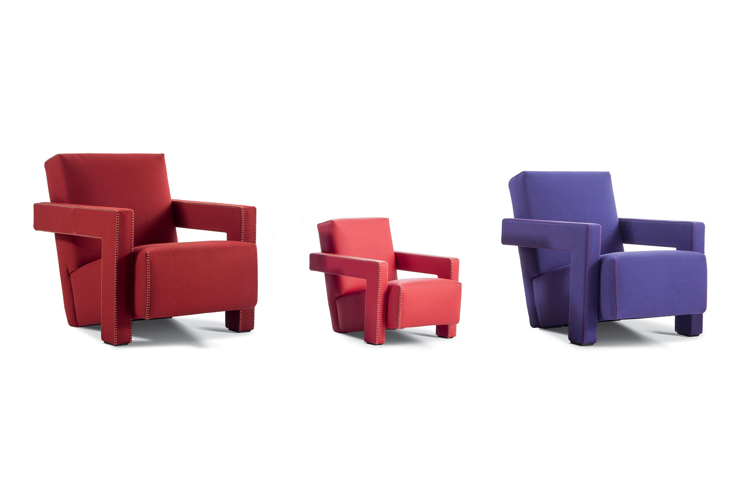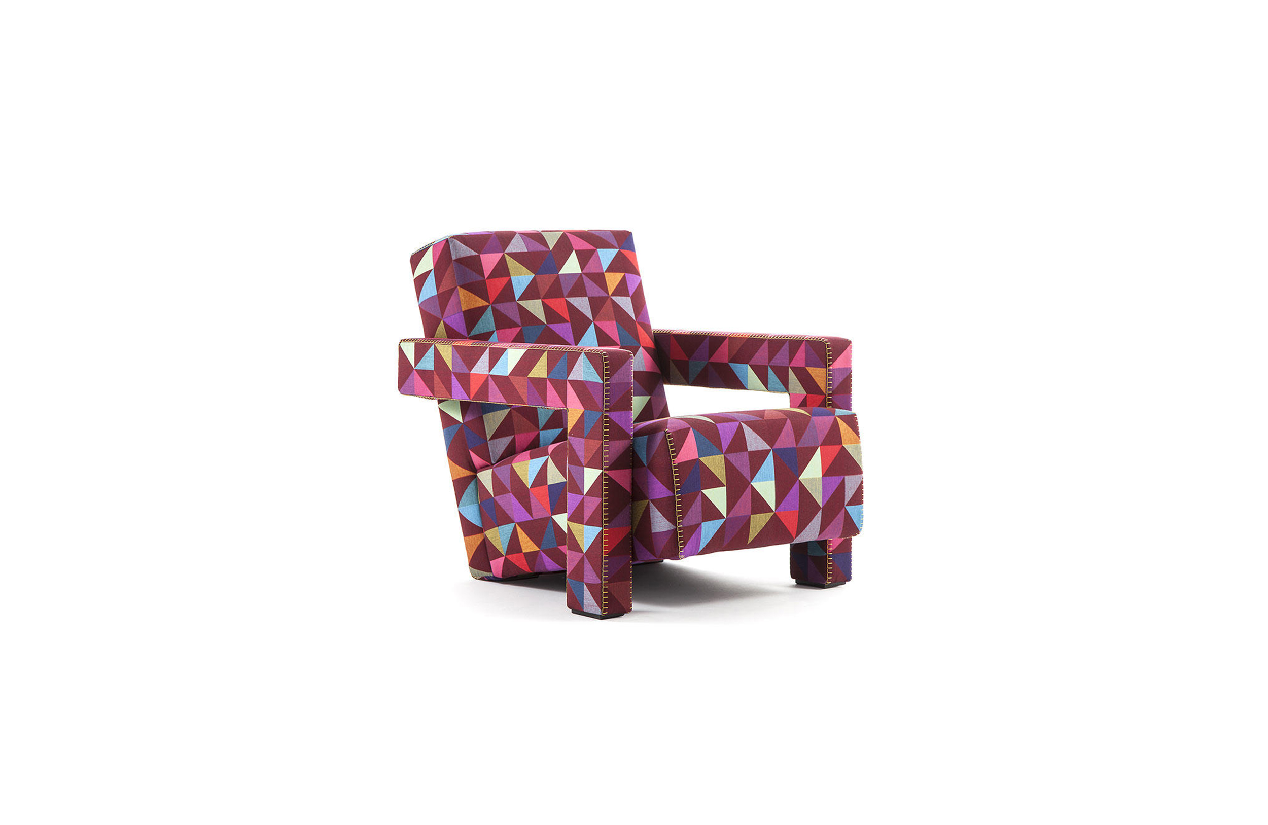 Rietveld是一位荷兰建筑师,他有强烈的实验倾向,他和蒙德里安是1917年新塑料德斯提尔运动的创始人之一,于1935年设计了Utrecht模型。这个模型是为阿姆斯特丹的Metz&co百货公司创建的,因此为大众市场设计,并代表Rietveld决定采用更“市场导向”的方式来舒适和放松。以五种不同颜色的两种可见的拼接(鞍针或齐格扎格)为例,强调了元素的分解。