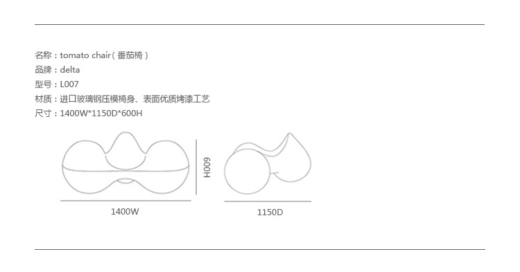 番茄椅(Tomato Chair)是芬兰著名的设计大师艾洛·阿尼奥在20世纪70年代设计的经典作品,这款椅子是由Ball chair和Pastil chair做了灵巧的变化后,才诞生的番茄椅(Tomato Chair),它成为椅子造型设计中的经典作品,这种椅子以流畅润滑的弧线和曲面取代传统椅子的直线和直角,成为椅子造型设计中的经典作品,它的外观是由两个圆形的扶手,三角形的靠背,非常独特新颖。
