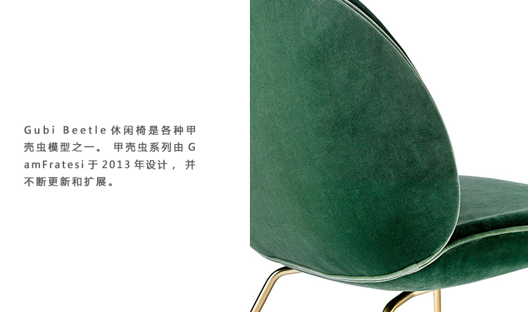 Gubi Beetle休闲椅是各种甲壳虫模型之一。 甲壳虫系列由GamFratesi于2013年设计,并不断更新和扩展。