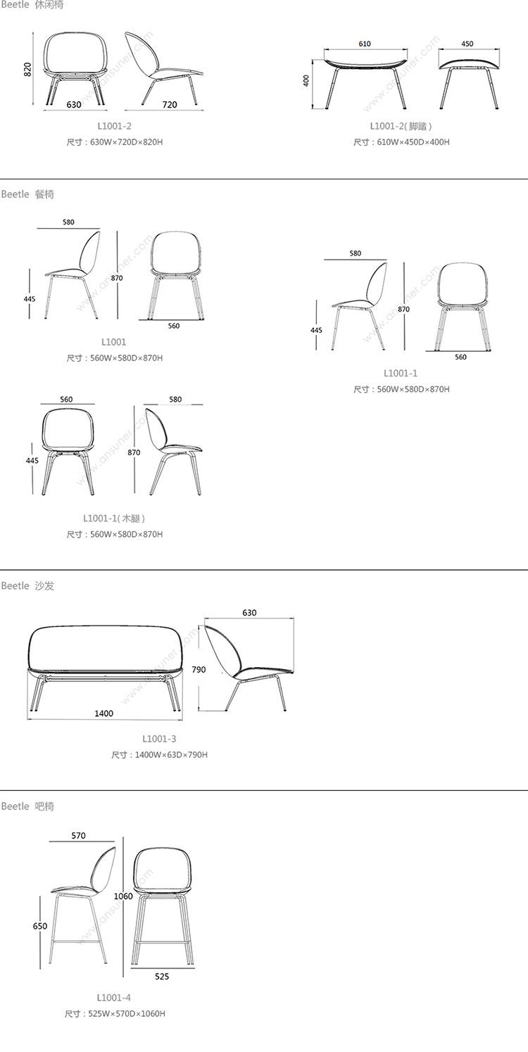 Beetle 休闲椅 系列尺寸/示意图