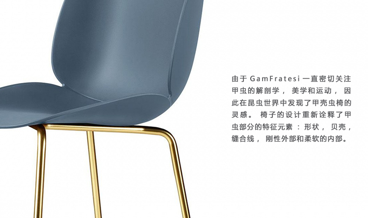 由于GamFratesi一直密切关注甲虫的解剖学,美学和运动,因此在昆虫世界中发现了甲壳虫椅的灵感。 椅子的设计重新诠释了甲虫部分的特征元素:形状,贝壳,缝合线,刚性外部和柔软的内部。
