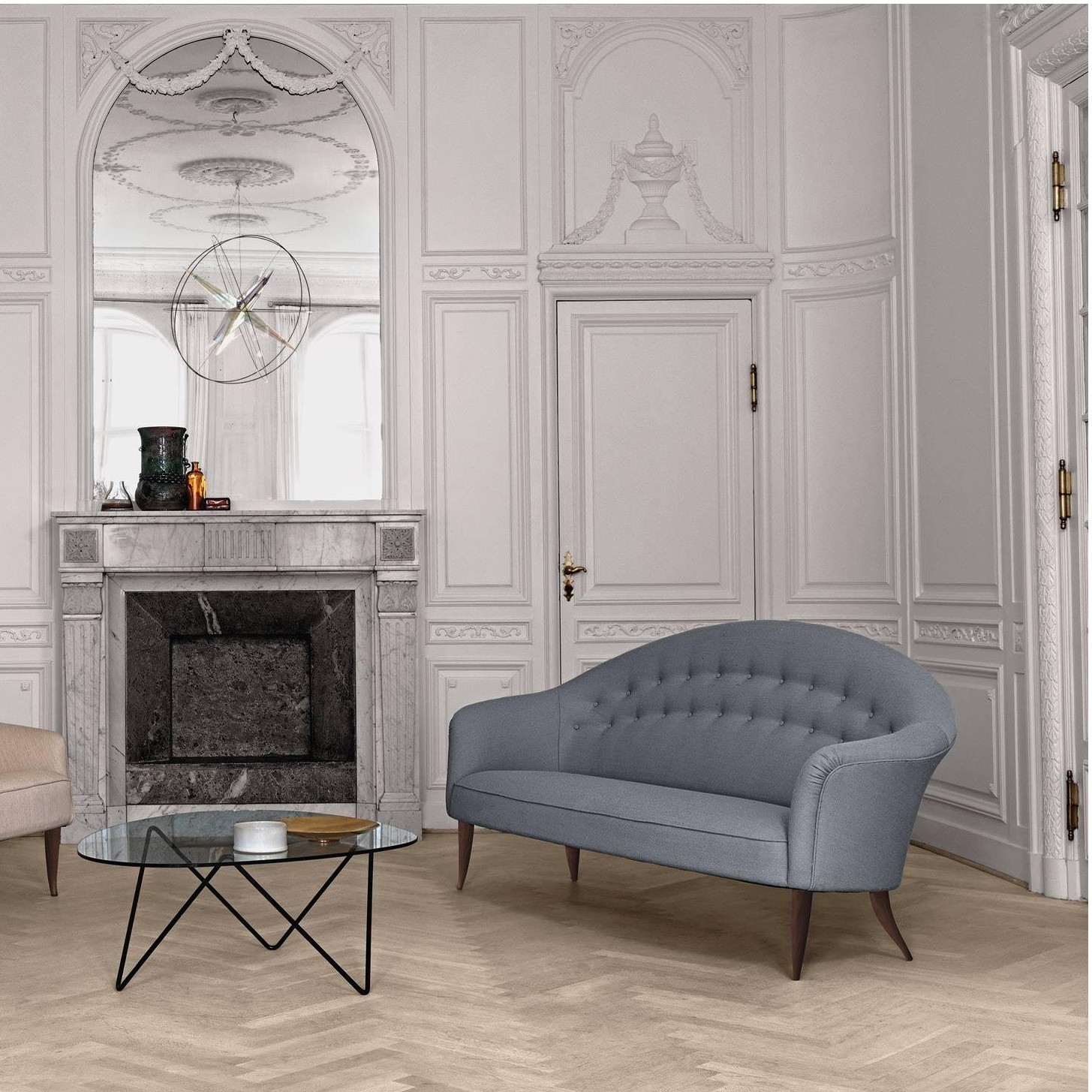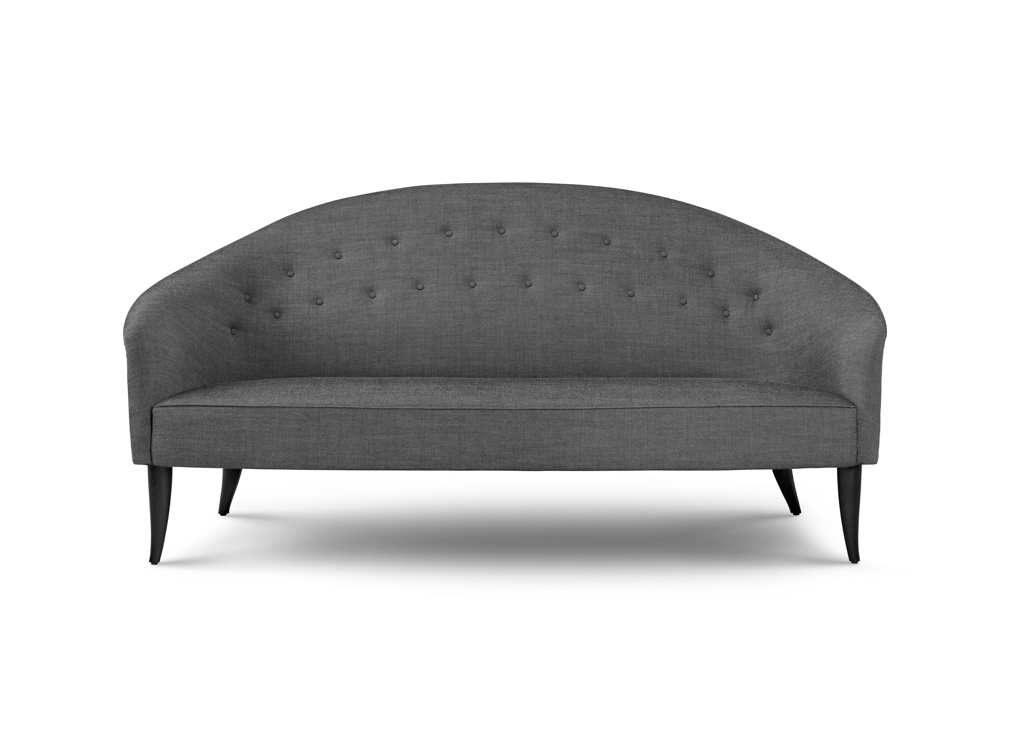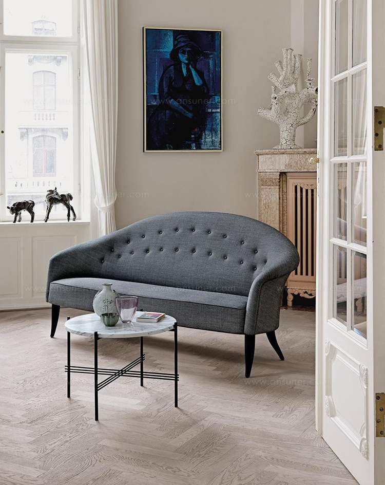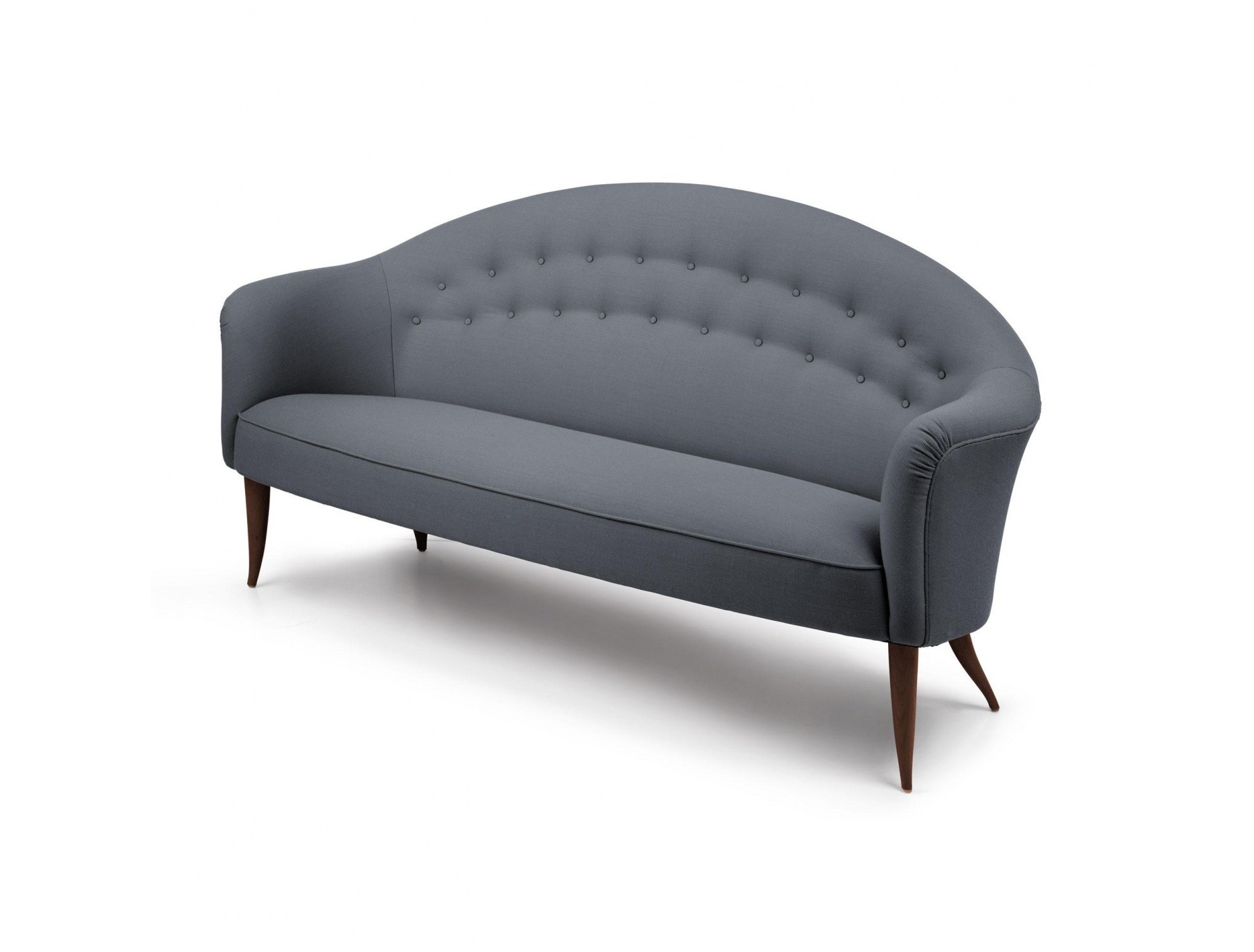 1958年,Kerstin H. Holmquist为NK Nordiska Kompaniet设计的天堂沙发,提升了优雅和有机的形状——这是瑞典现代设计的一大特色。柔软的背部线条,平滑地延伸到扶手,给人一种古典的吸引力,锥形的和弯曲的腿给2.5座的沙发设计带来了一种异想天开的扭曲。
