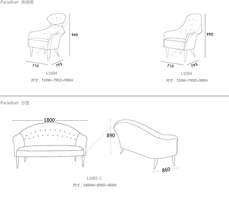 Paradiset 休闲椅 系列尺寸/示意图
