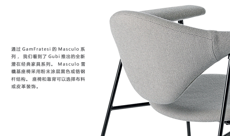 通过GamFratesi的Masculo系列,我们看到了Gubi推出的全新潜在经典家具系列。 Masculo雪橇基座椅采用粉末涂层黑色或铬钢杆结构。 座椅和靠背可以选择布料或皮革装饰。 包括塑料滑动,可根据要求提供毛毡滑动。 还提供不同的基本选择以及休息室版本。